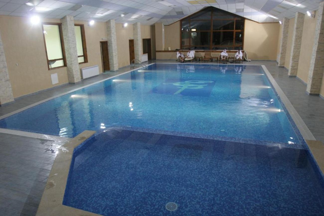 Басейнът е един от най големите в Банско с размери 9 на 15 метра и дълбочина от 1.20 м до 1.70 м, към него има детска секция с дълбочина 0.60 метра.