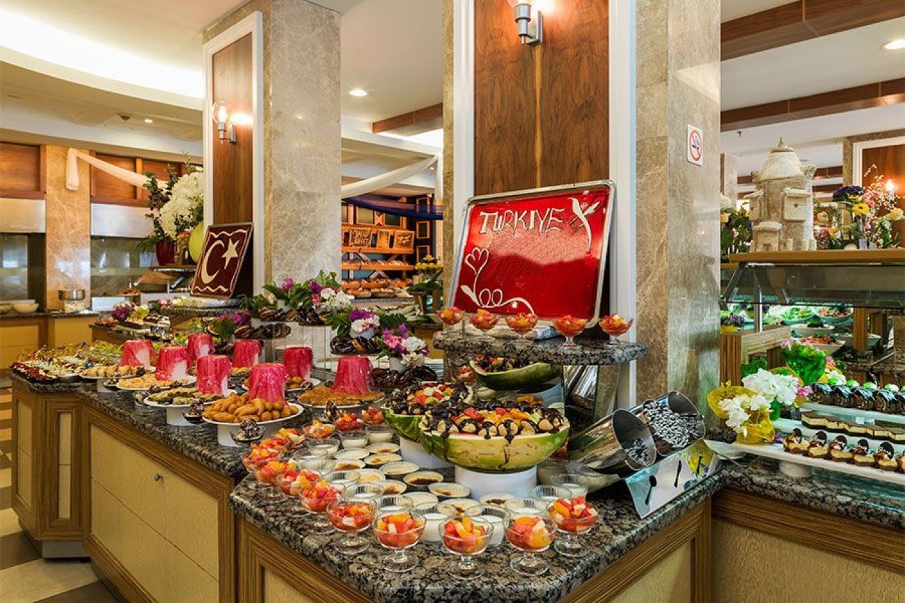 SEHER KUMKÖY STAR & SPA предлага ресторант, който се състои от две секции - терасовидна и закрита, е проектиран да ви служи със своята елегантна и различна атмосфера, богата и вкусна закуска под формата на открит бюфет, късна закуска, обяд, вечеря и вечерна закуска.- ALL INCLUSIVE