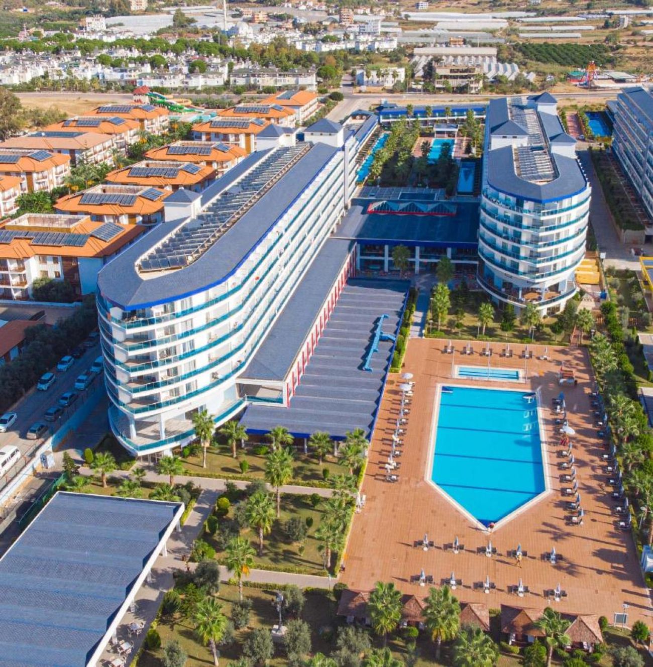 Намира се на 100 км от летище Анталия, на 110 км от центъра на Анталия, на 18 км от центъра на Алания, на 50 м от брега на морето. Построен 2014 г. на обща площ от 44 900 м2. Гостите на хотела имат достъп до Еftalia island, разположен на плажа, състоящ се от аквапарк с басейни, водни пързалки и заведения.