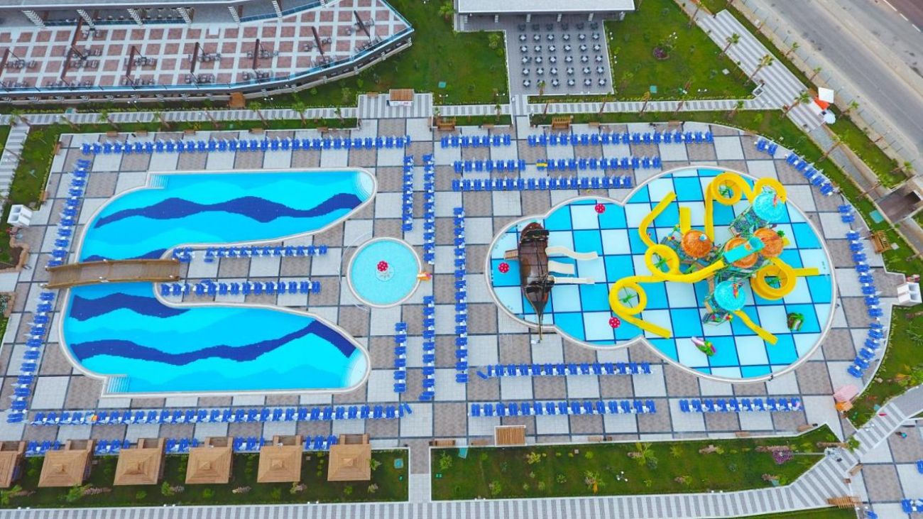 Намира се на 100 км от летище Анталия, на 110 км от центъра на Анталия, на 18 км от центъра на Алания, на 4 км от Конаклъ, на 50 м. от брега на морето (през път). Построен 2017 г., на обща площ от 60 000 м2. Частично реновиран 2023 г. Достъп до Еftalia Island, разположен на плажа, състоящ се от аквапарк с басейни, водни пързалки и заведения.