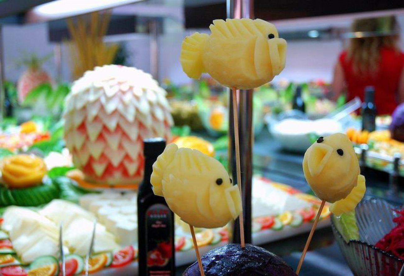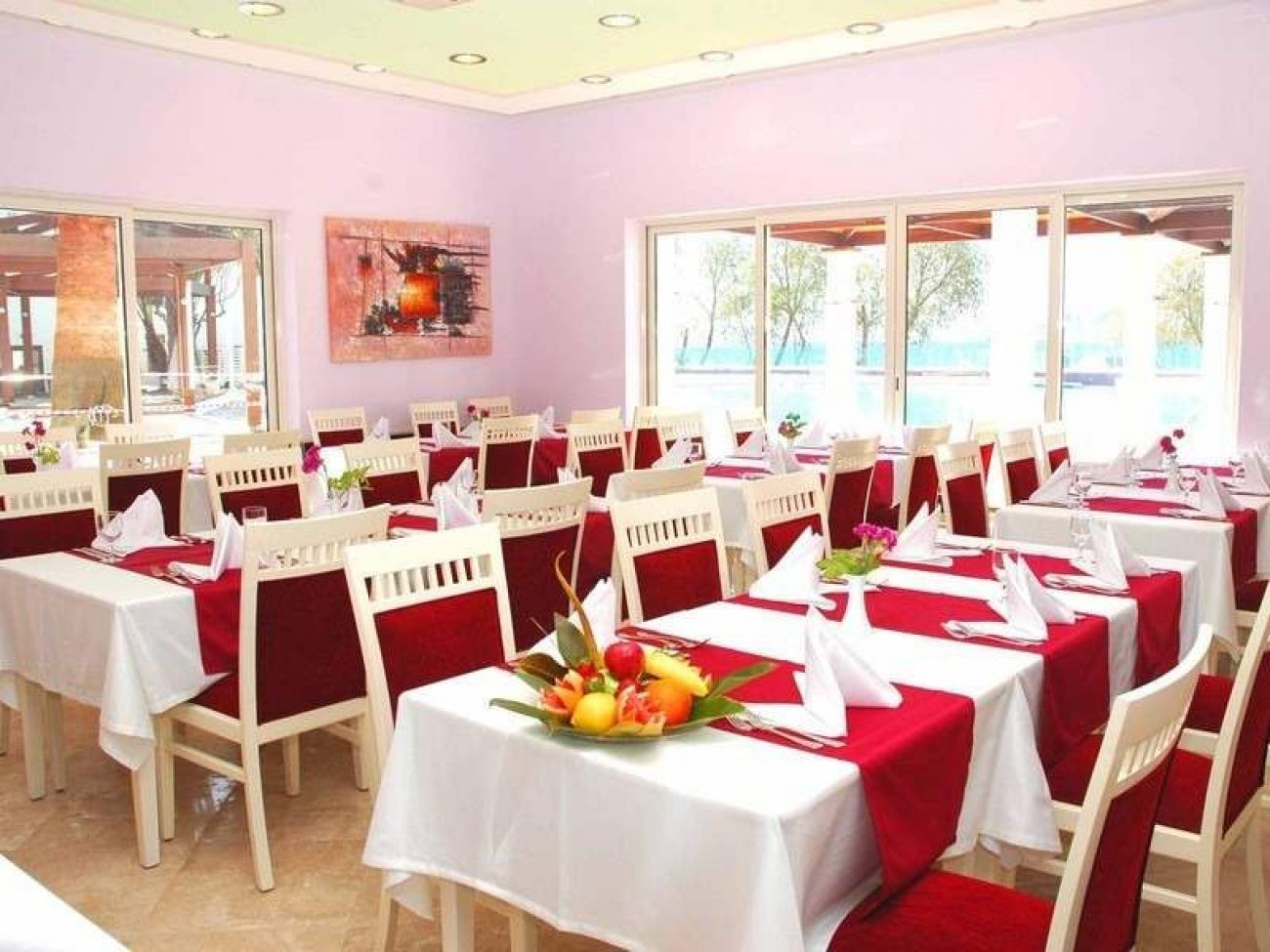 Основният ресторант включва зони за хранене на закрито и открито и сервира закуска, обяд и вечеря на шведска маса. Баровете предлагат разнообразие от алкохолни и безалкохолни напитки.