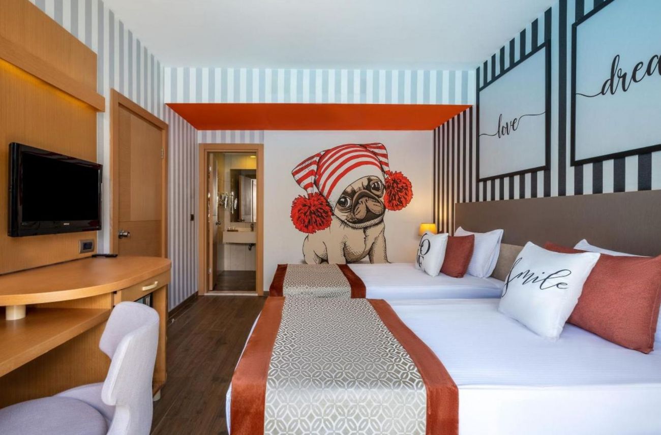 Стаи Main Building: 614 Maing Building Standard Room (изглед градина или море, 27-30 м2), 49 Main Building Family Room (2 спални, баня, изглед градина или море – 38 м2), 16 Main Building Suite Room (спални и всекидневна с изглед градина или море, 50-62 м2).