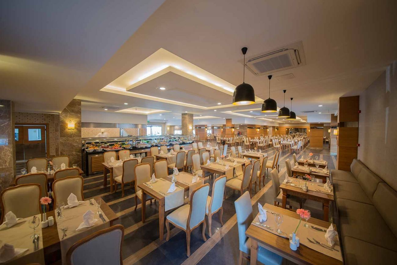 Работно време на основния ресторант: Закуска 07: 00-09: 30, късна закуска 09: 30-10: 30, обяд 12: 30-14: 00, вечеря 19: 00-21: 00, късна вечеря 23: 30- 00: 00. Бюфет. През деня се предлагат леки закуски в баровете край басейна и на плажа