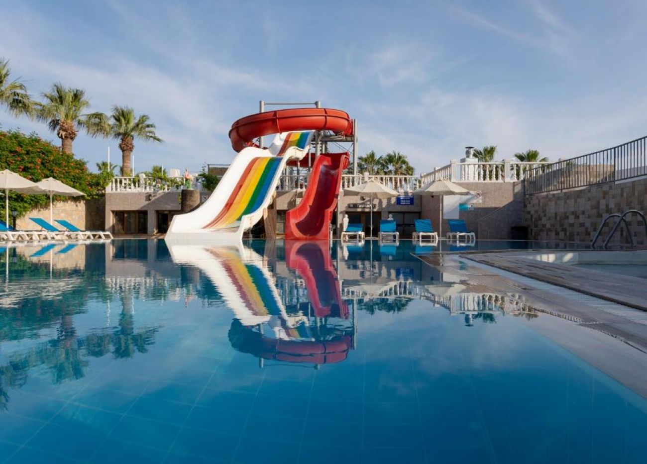 Основен ресторант, 1 бар, 1 открит басейн, 2 водни пързалки, паркинг.
