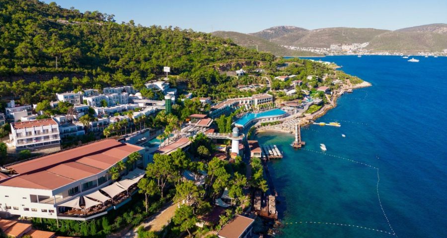 Хотелът се намира на 23 км от летище Милас и на 10 км от центъра на град Бодрум, разположен в района на Торба. Последно реновиран през 2024г.