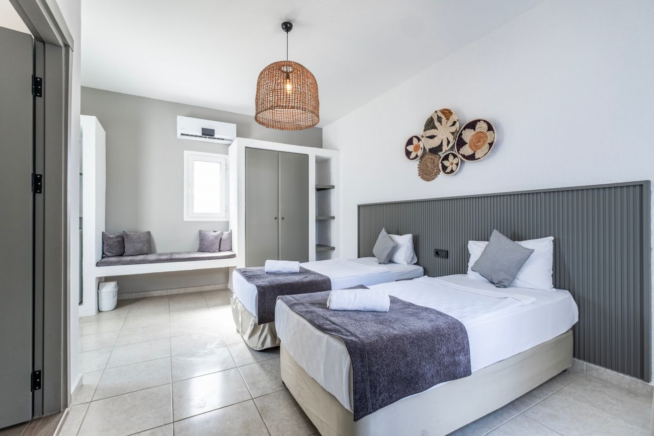 Намира се на 40 км от летище Бодрум, на 7 км от центъра на Бодрум, на 2 км от центъра на Гюмбет, район Битез, на 300 м от брега на морето. Построен 2001 г., на обща площ от 7.000 м². Реновиран 2024 г.