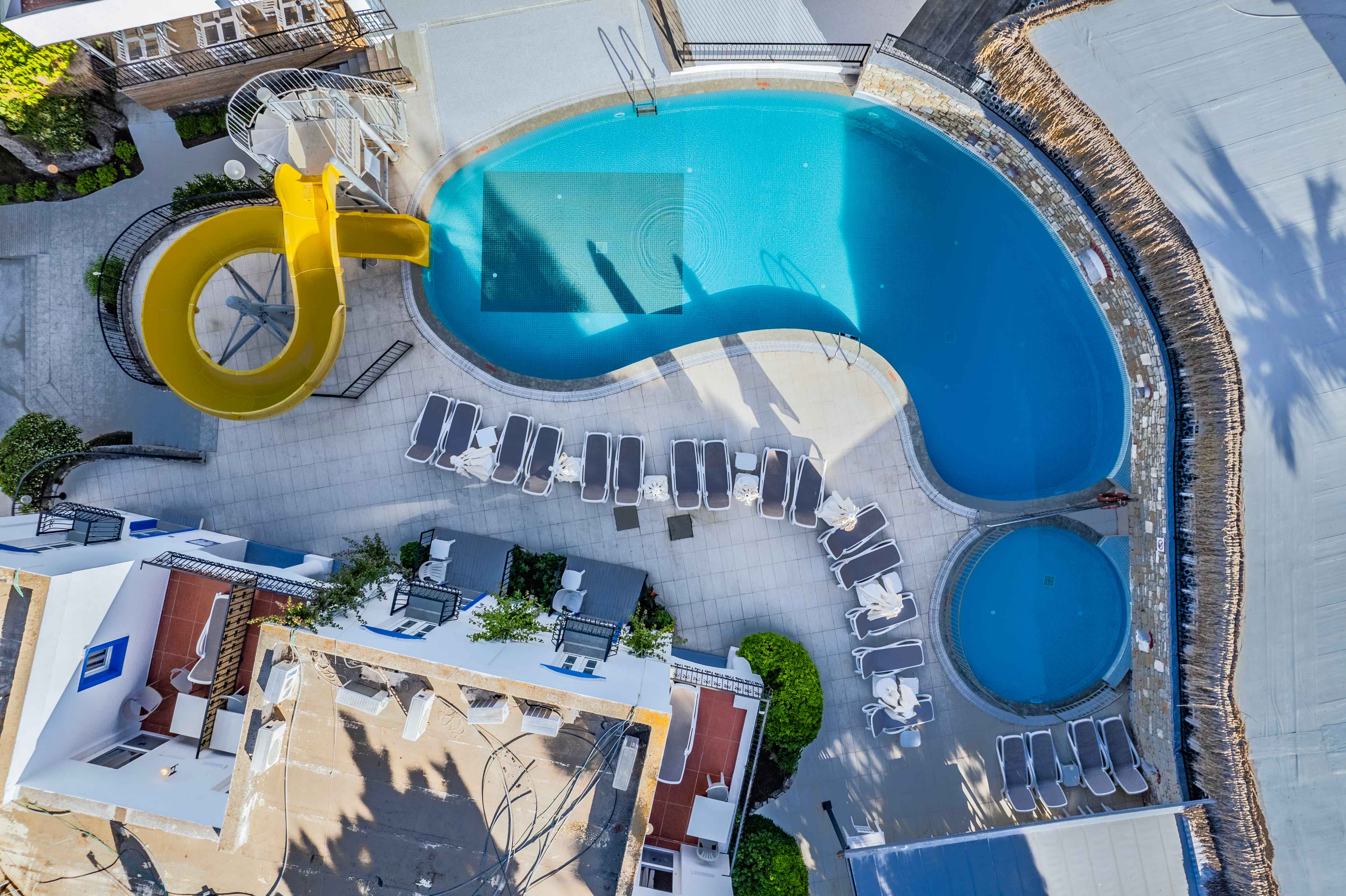 За децата: Детски басейн, водна пързалка, детска площадка, мини клуб.