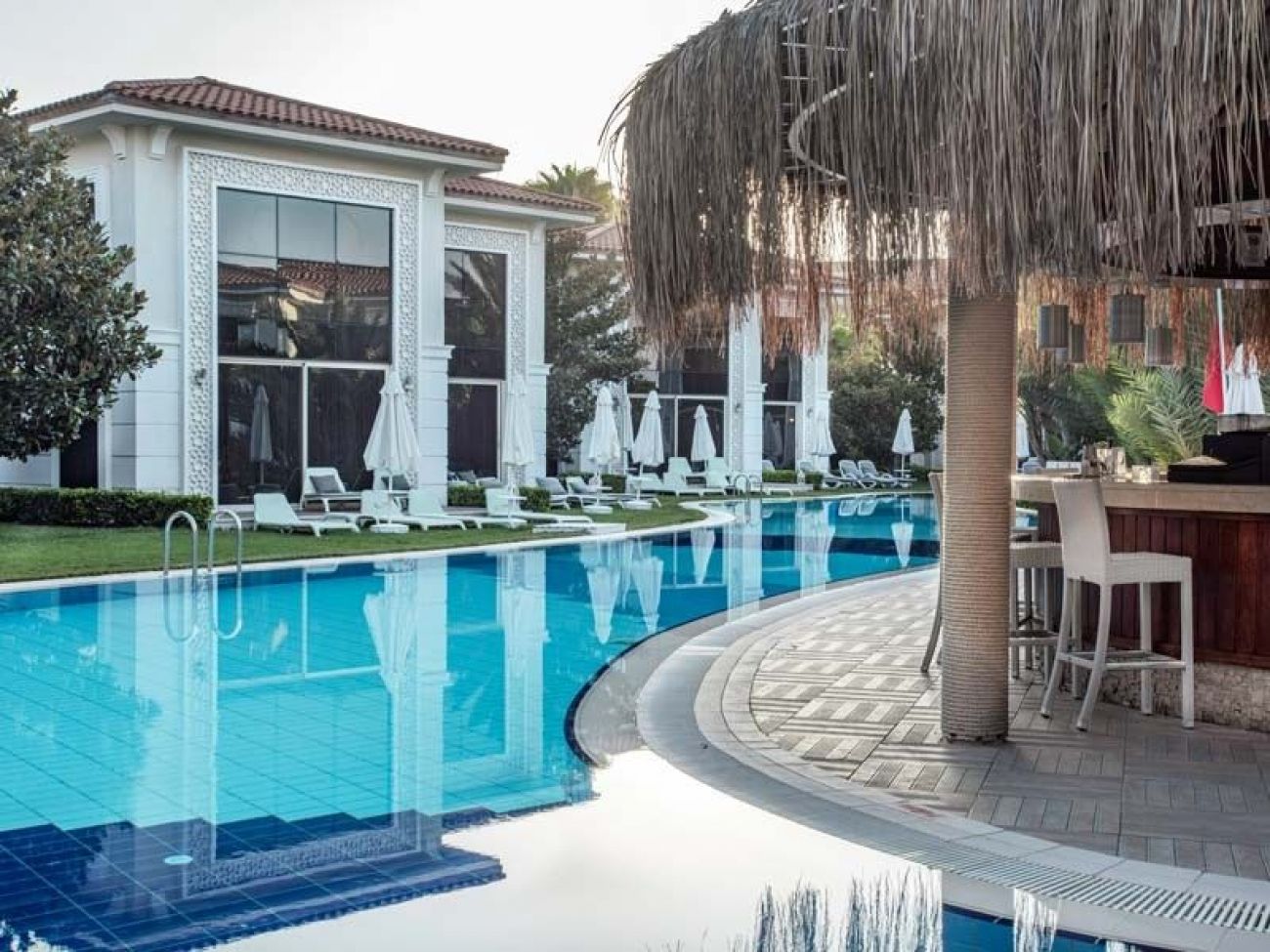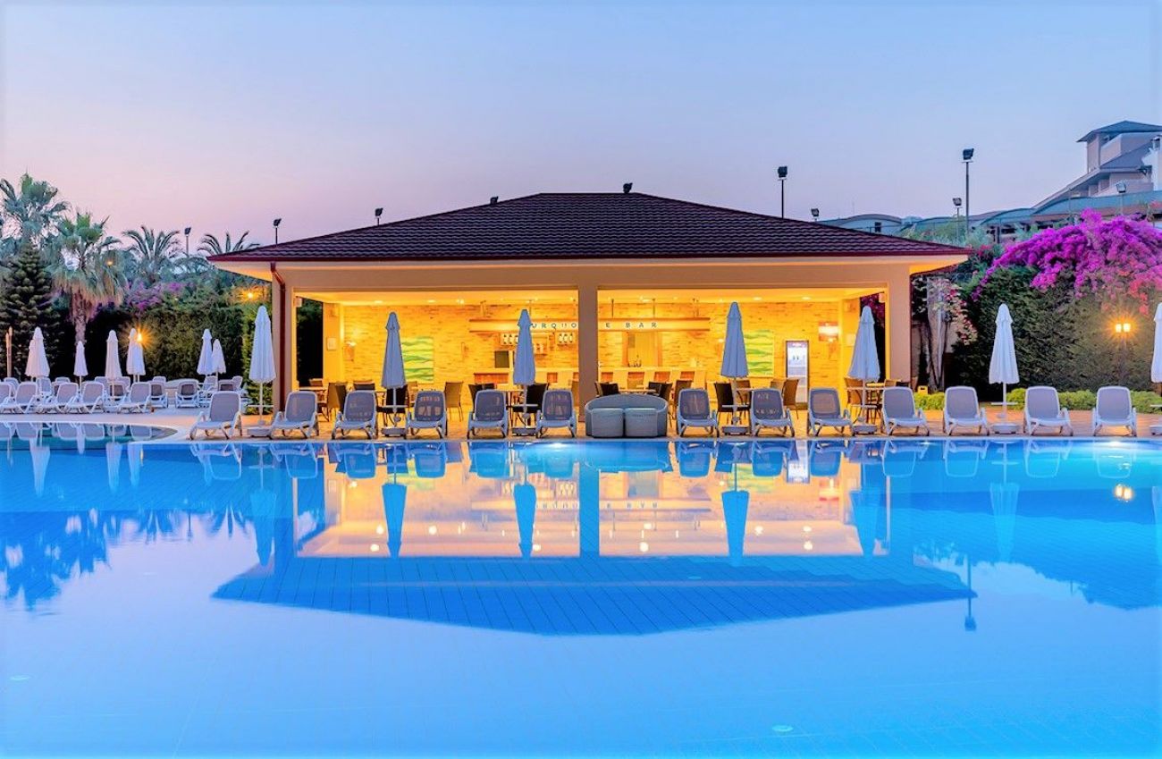 Хотелът се намира на брега на морето, в село Кумкьой, на 5 км от Сиде. Състои се от една основна 5-етажна сграда, една 4-етажна пристройка, девет 2- и 3-етажни бунгала и комплекс от 2-етажни вили. КОНЦЕПЦИЯ "ЛЯТО 2022"