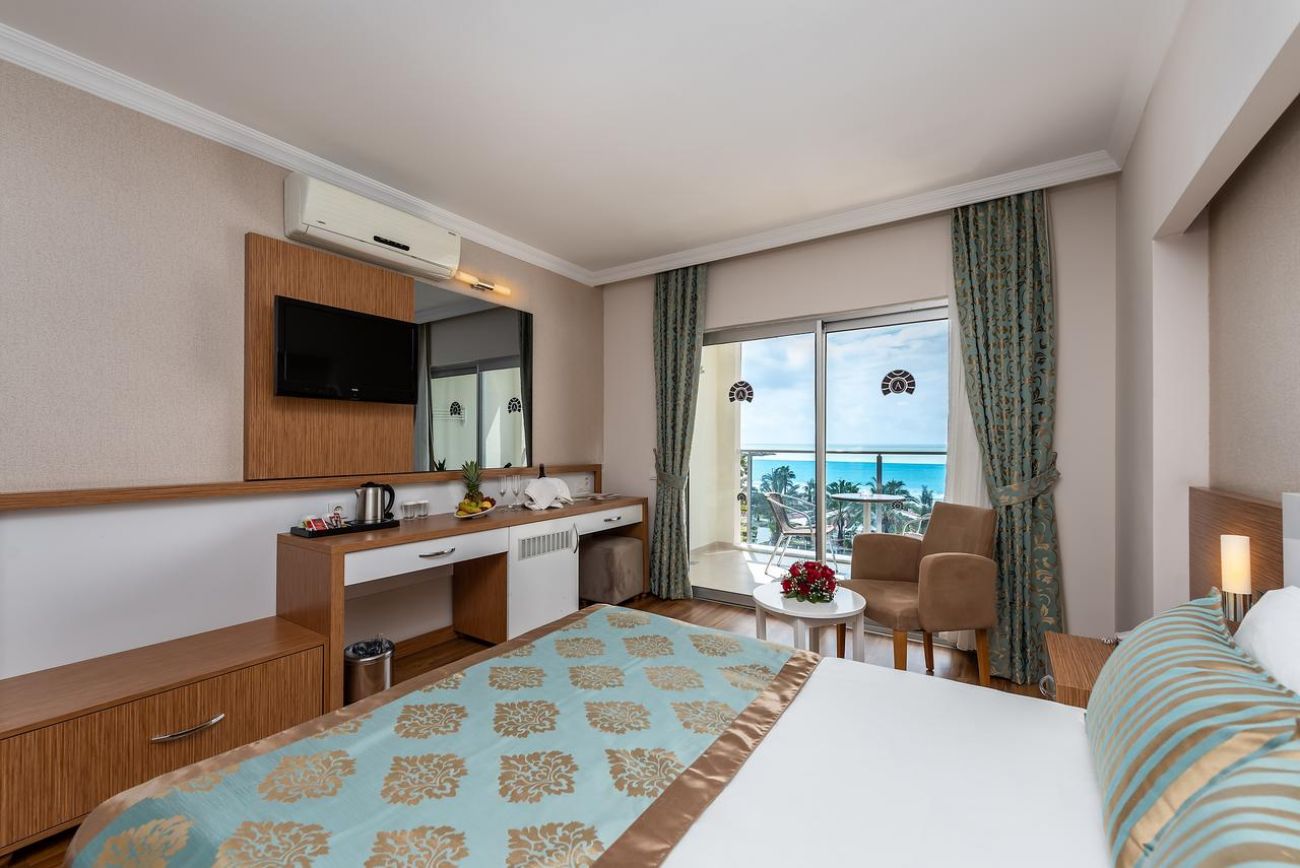 Основният корпус Hotel е построен в 2011 г., корпус Anex - през 1993 г., последно реновиран през 2011 г., обща площ 10 000 м2,. Състои се от 7-етажен основен корпус Hotel и един 7-етажен корпус, 155 standard room (макс. 2+2 чов., 32 м2)q 65 economy room (с изглед към градината или пътя, макс. 2+2 чов., 32 м2), Anex - 96 anex room (макс. 2+1 чов., 18 м2)., основен ресторант, 2 открити басейна, закрит басейн, 5 бара, лекар на повикване, фризьорски салон, магазини, пералня, 2 конферентни зали (за 100-400 чов.) БЕЗПЛАТНИ - турска баня, сауна, фитнес зала, аеробика, водна гимнастика, плажен волейбол, тенис на маса, дартс, тенис - корт с твърдо покритие, анимационни програми, билярд, дискотека (вход), безжичен Интернет (на лоби) ПЛАТЕНИ – масаж, джакузи, осветление на тенис-корта, наем на ракети и топки за тенис, водни видове спорт, интернет-кафе. Плаж - собствен, пясък. Бар на плажа - безплатно. На басейна и на плажа: чадъри, шезлонги, матраци – безплатно. Плажни кърпи :срещу депозит.