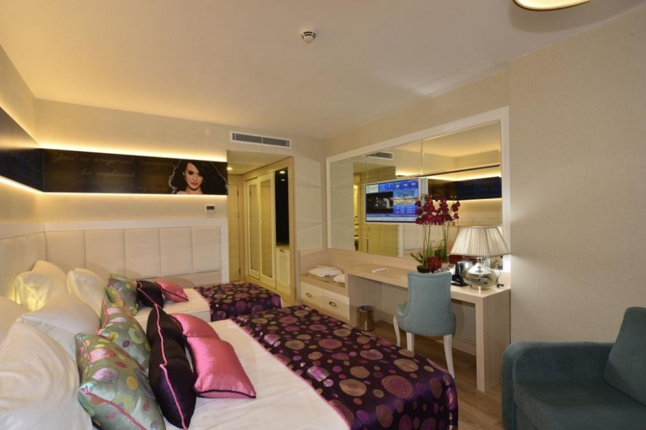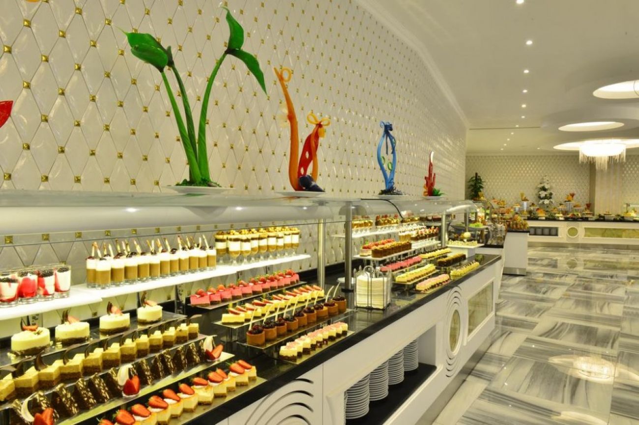 Основен ресторант, 2 а-ла-карт ресторанта (турски, италиански - с предварителна резервация), сладкарница, 5 бара (1 работещ 24 ч.), дискотека, открит и закрит басейн (отопляем през зимния сезон), 4 водни пързалки, СПА център, магазини, конферентна зала. ЗА ДЕЦАТА: Детско меню, открит и закрит детски басейн, детска площадка, мини клуб (4-12г.), детска анимация. БЕЗПЛАТНИ УСЛУГИ: Сауна, турска баня, парна баня, зона за релакс, аеробика, водна гимнастика, уроци по танци, тенис на маса, дартс, боча, анимация, жива музика, Wi-Fi (в Лоби). ПЛАТЕНИ УСЛУГИ: Масаж, пилинг, фризьор, химическо чистене, лекар, детегледачка, водни спортове, рент - а кар. ПЛАЖ: Собствен, пясъчно - чакълест. Чадъри, шезлонги и матраци на плажа и при басейна - безплатно. Плажни кърпи – срещу депозит.