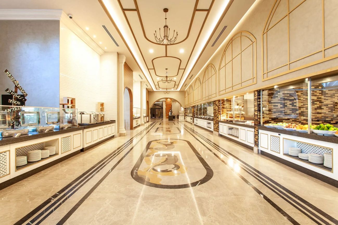 Основен ресторант, 4 а-ла-карт ресторанта ( турски, рибен, италиански, азиатски – платени с предвариелна резервация), 6 бара, сладкарница, 2 открити и 1 закрит басейн, аквапарк, СПА център, анимация, дискотека, паркинг.