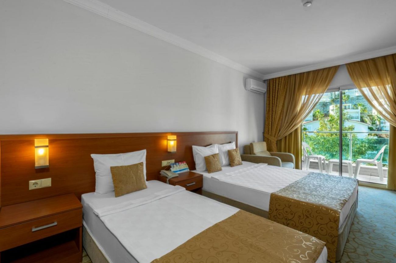 Хотелът разполага с общо 240 стаи, разположени в една 6-етажна основна сграда, от които 218 стандартни стаи Standard room (изглед суша Land view - 26 м2), 20 фамилни стаи Family room (2 спални, 1 баня – 42 м2), 2 стаи за инвалиди. Всички стаи са оборудвани с климатик, телевизор, телефон, баня с вана, сешоар, минибар (вода, безалкохолни напитки – само при пристигане), сейф (безплатен). Почистване на стаите – всеки ден, смяна на кърпите – при поискване, смяна на спалното бельо – 2 пъти в седмицата.