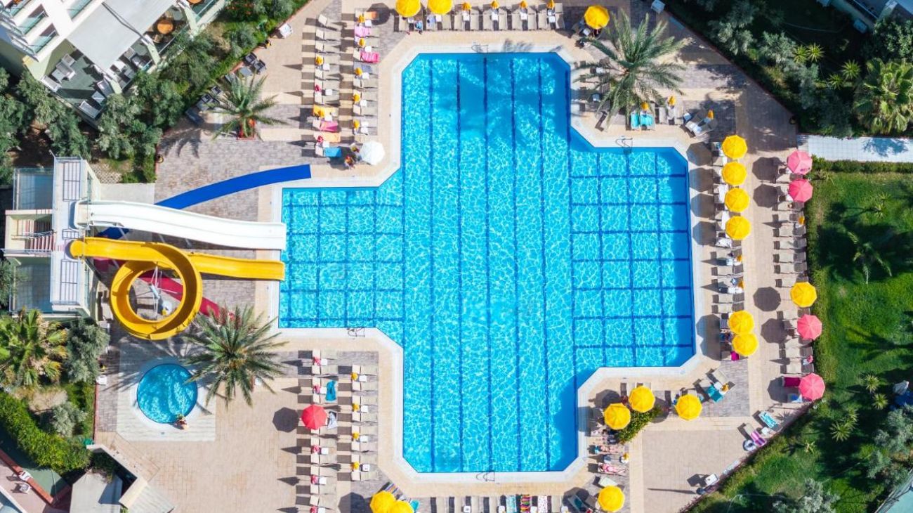 Основен ресторант, 3 бара, 1 открит басейн, 2 водни пързалки, 1 конферентна зала. За децата: Детски басейн, мини клуб (4-12), детска площадка. Безплатни услуги: Сауна, турска баня, фитнес, лека анимация, гимнастика, тенис на маса, дартс, водно полo. Платени услуги: Масаж, фотограф, химическо чистене, магазини, лекар, водни спортове, рент-а-кар, интернет.