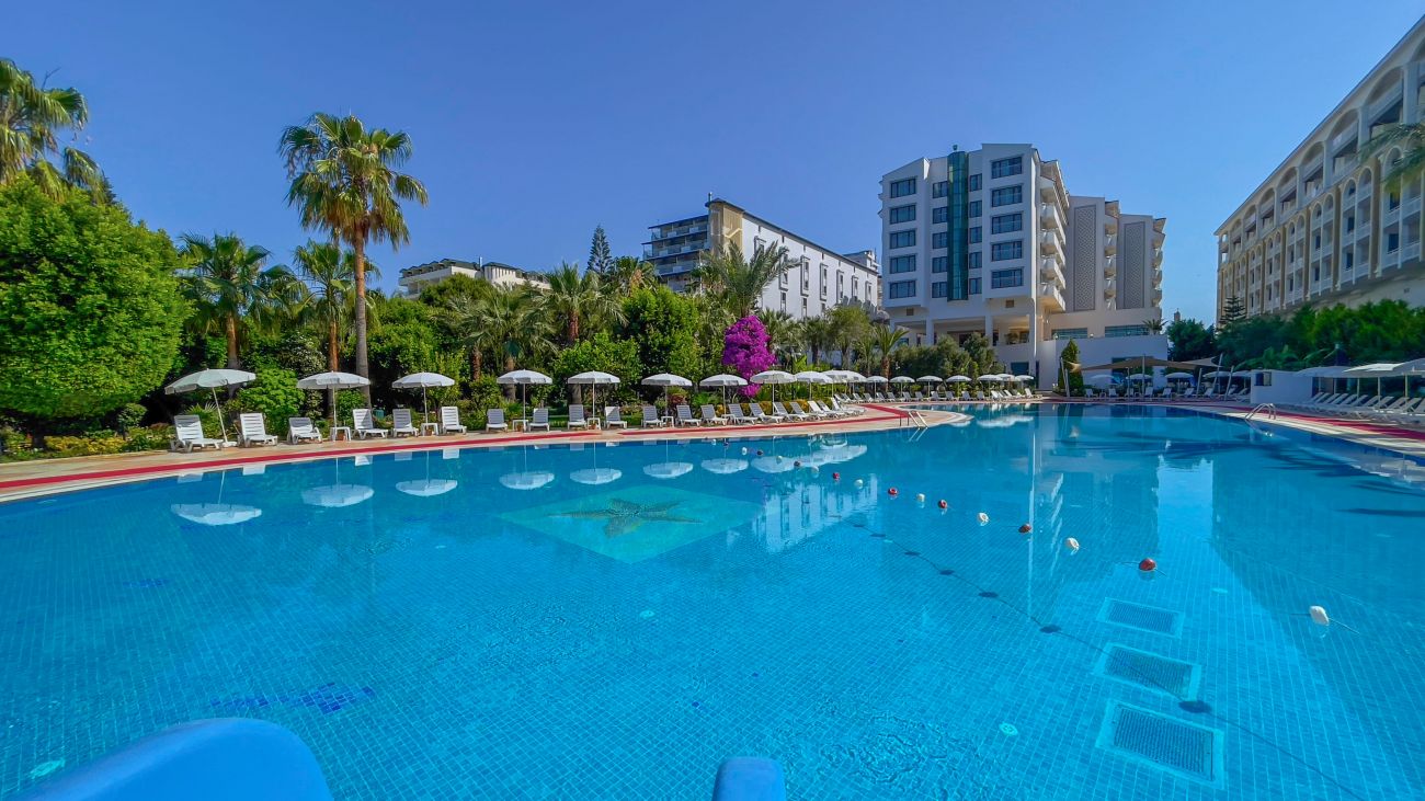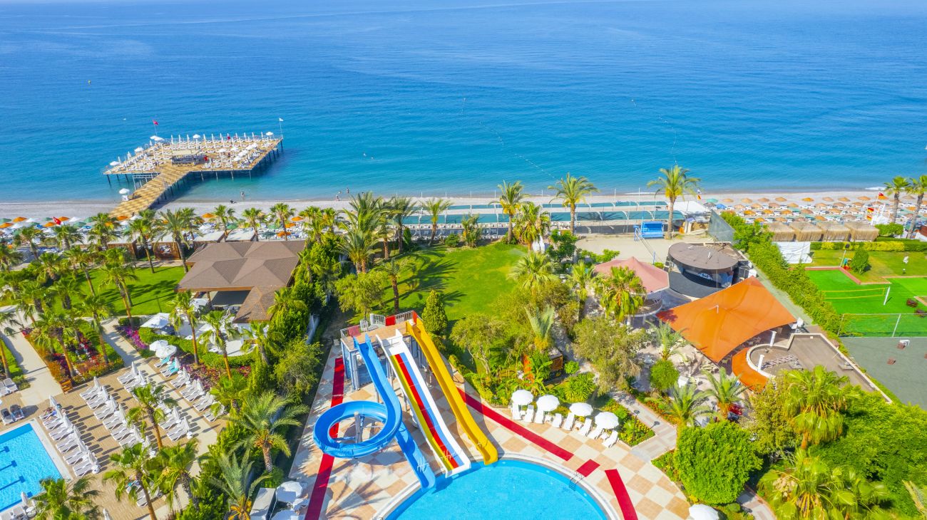 Основен ресторант, 2 а-ла-карт ресторанта (турски и италиански - 1 безплатно посещение на един от ресторантите - с предварителна резервация), 2 бара, открит и закрит басейн, 3 водни пързалки, магазини, дискотека (напитките се заплащат). За децата: детска площадка, детски басейн, мини-клуб(4-12г.) Безплатни услуги: Турска баня, фитнес, тенис на маса, софт анимация, WiFi (на лоби). Платени услуги: Сауна, масаж, джакузи, билярд, телефон, водни спортове, лекар, магазини, център за красота, химическо чистене.
