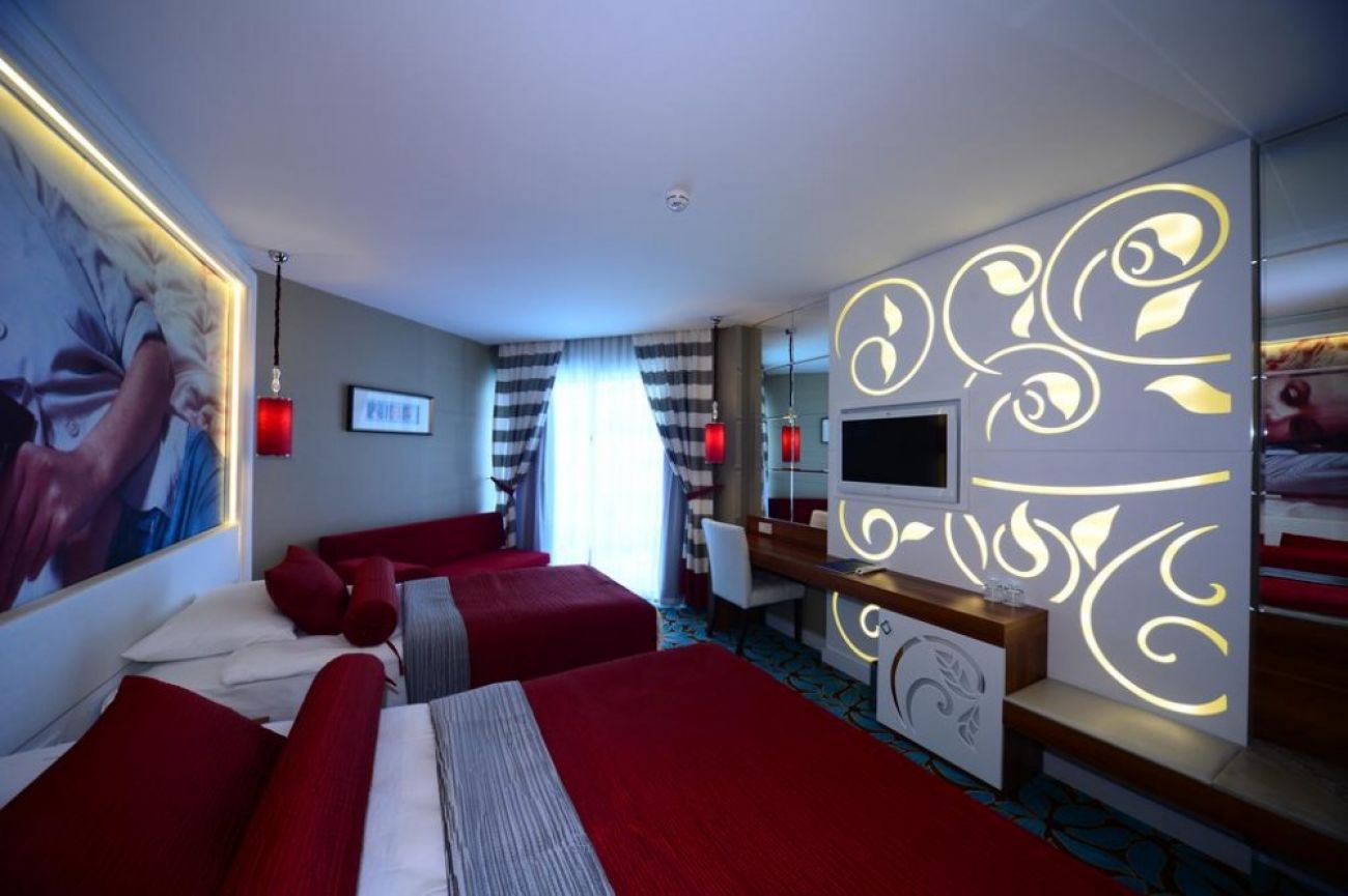 Основен ресторант, 3 а-ла-карт ресторанта (турски, италиански, азиатски – безплатно посещение на един от тях, при минимум 7 нощувки - с предварителна резервация), 5 бара, дискотека, открит и закрит басейн (през зимния сезон), 6 водни пързалки, СПА център, магазини, 3 конферентни зали. ЗА ДЕЦАТА: Детски меню, детски басейн, детска площадка, бейби клуб (0-3г.), мини клуб (4-12г.), мини диско. БЕЗПЛАТНИ УСЛУГИ: Сауна, турска баня, парна баня, фитнес, аеробика, пилатес, тенис на маса, тенис корт, дартс, мини кино, анимация, тематични вечери. ПЛАТЕНИ УСЛУГИ: Масаж, пилинг, фризьор, химическо чистене, лекар, детегледачка, оборудване и осветление за тенис корт, център за игри, билярд, водни спортове, рент - а кар, Wi-Fi интернет. ПЛАЖ: На 150 м. от хотела (минава се през надлез), собствен, пясъчно - чакълест. Чадъри, шезлонги, матраци и плажни кърпи на плажа и при басейна - безплатно.