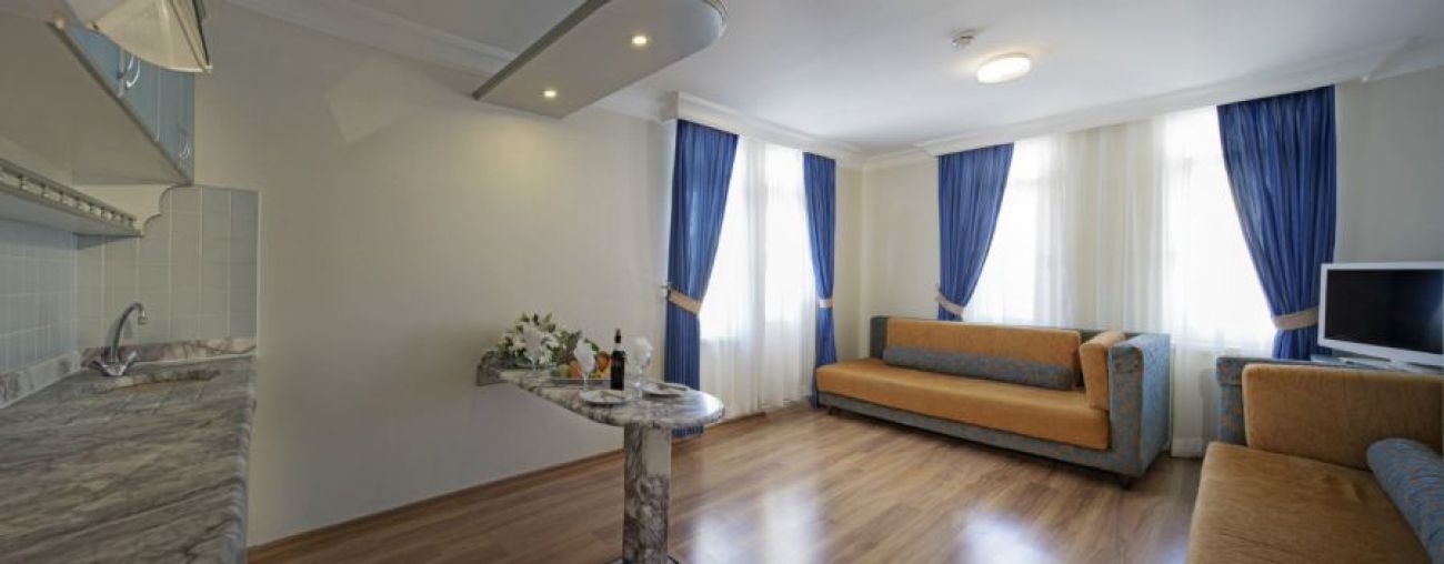 Хотелът се намира на брега на моррето, на 1 км от Алания и на 120 км от летище Анталия.