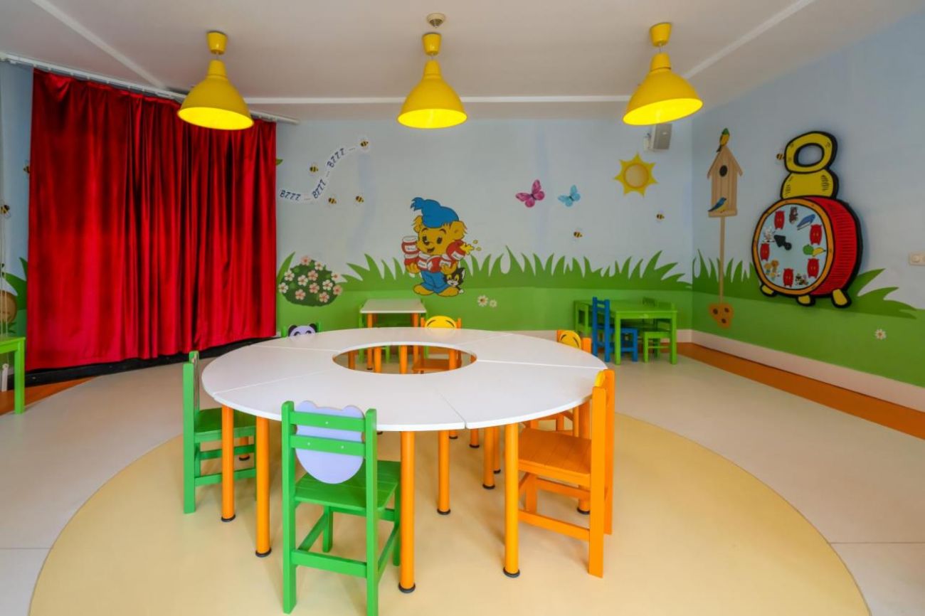 За децата: Детски басейн, бебешки басейн, детска площадка, мини клуб (4-12 г), бебе лаундж, бебе пакет (0-3 г - бебешка количка, кошара, бебефон, столче за хранене, нагревател за бутилки, кана за гореща вода, бебешка вана, гърне, подложки за повиване, мокри кърпички, бебешки шампоан, бебешки лосион - безплатно, с предварителна заявка), мини диско, детска анимация, детско кино.
