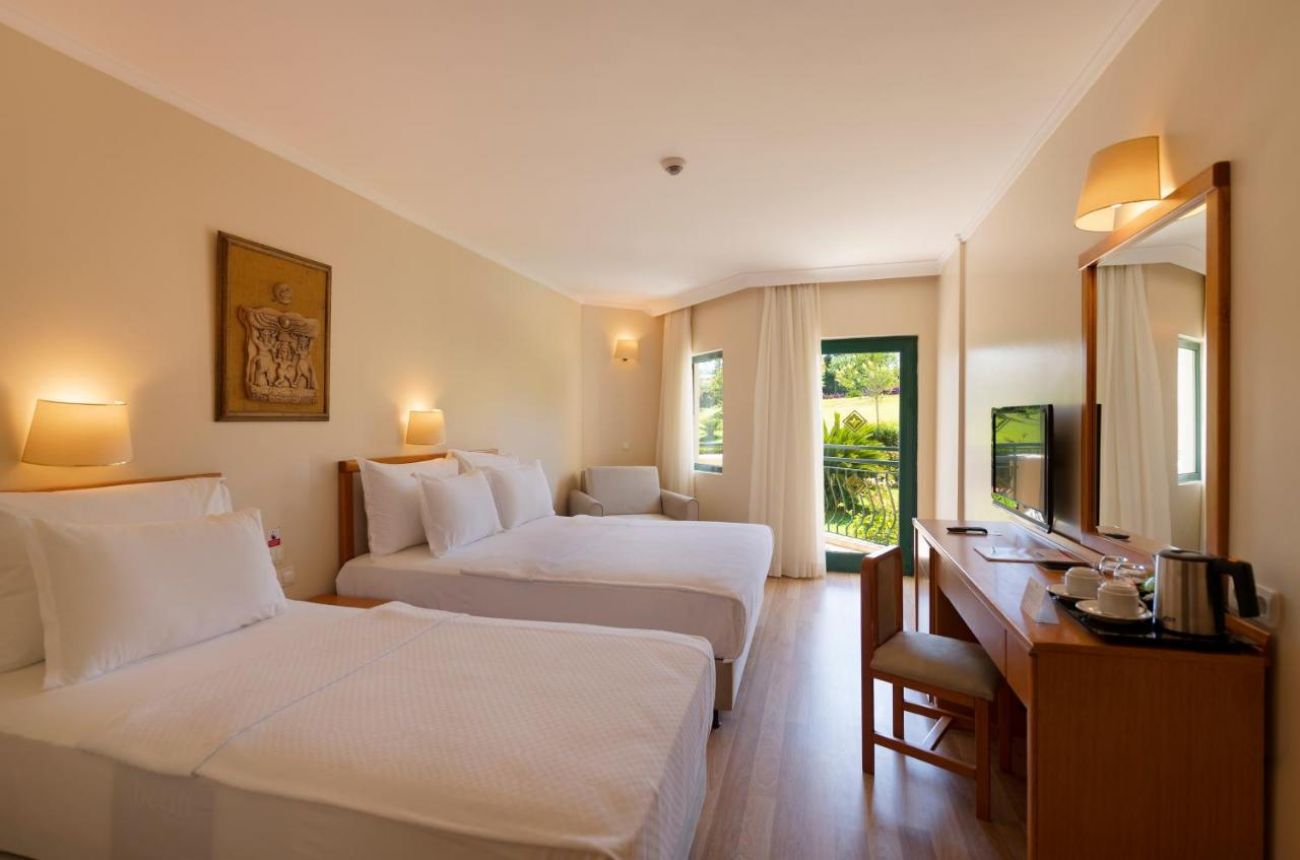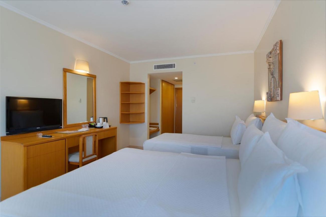 Стаи Main Building: Standard room (28 м2), Standard room Sea view (с изглед море - 28 м2), 95 Hotel Family room (2 спални, 1 баня - 43 м2), Junior Suite room (1 спалня, всекидневна, 2 бани - 45 м2), Suite Land view room (с изглед суша, 1 спалня, всекидневна, 2 бани - 40 м2), Suite Sea view (с изглед море, 1 спалня, всекидневна, 1 баня - 50 м2), Suite with Sauna & Jacuzzi* (1 спалня, 2 бани, джакузи – 75 м2), King Suite* (2 спални, всекидневна, 1 баня – 75 м2), Handicapped room (пригодени за хора с ограничена подвижност - 28 м2).