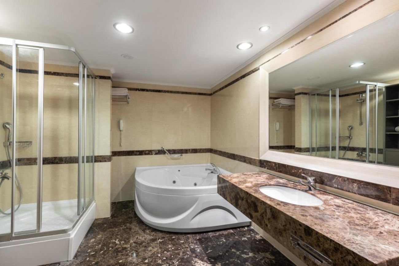 Всички стаи са оборудвани с климатик, телевизор, телефон, баня с душ/вана, минибар (всекидневно безплатно зареждане с вода, безалкохолни напитки и бира), сет за кафе/чай, сейф (платен). Почистване на стаите и смяна на кърпите - всеки ден, смяна на спалното бельо – 2 пъти в седмицата.