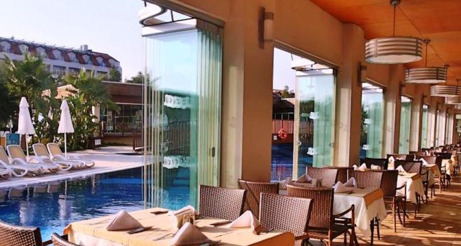 Хотелът разполага с открити и закрити басейни, които са специално предназначени за всяка възрастова група. 2 басейна за деца (30 и 60 кв.м), основен басейн, който включва 3 пързалки за възрастни и 2 за деца и още два други басейна. Шикозни и удобни шезлонги, плажни чадъри, душове и съблекални са разположени удобно, в непосредствена близост до басейните.