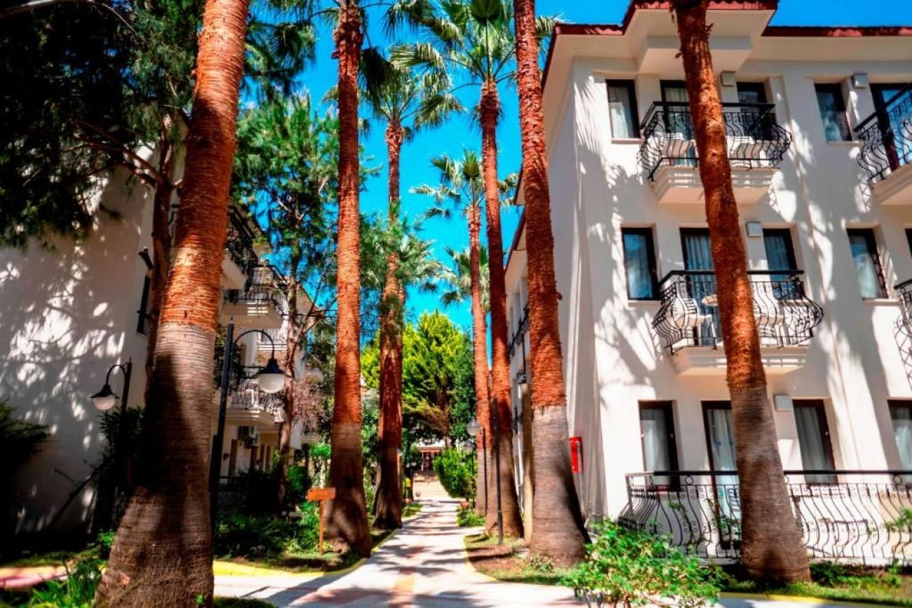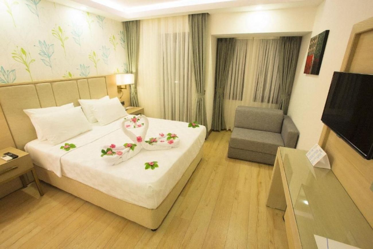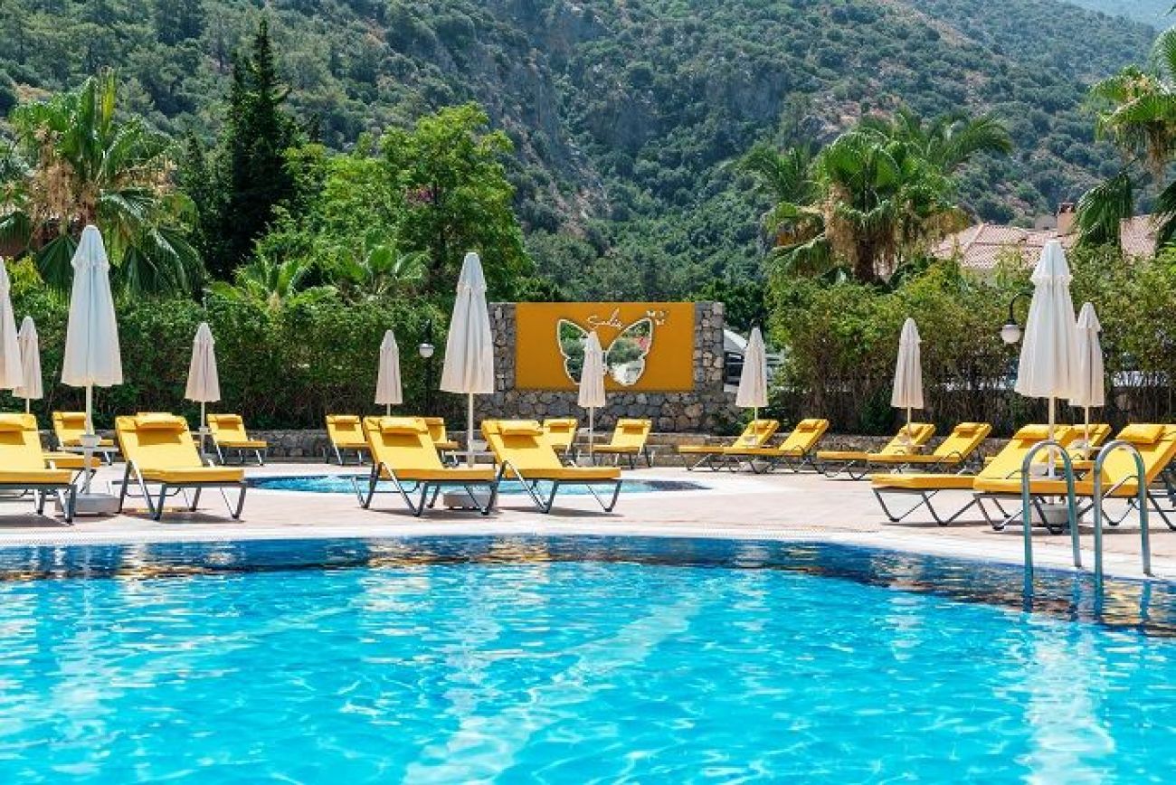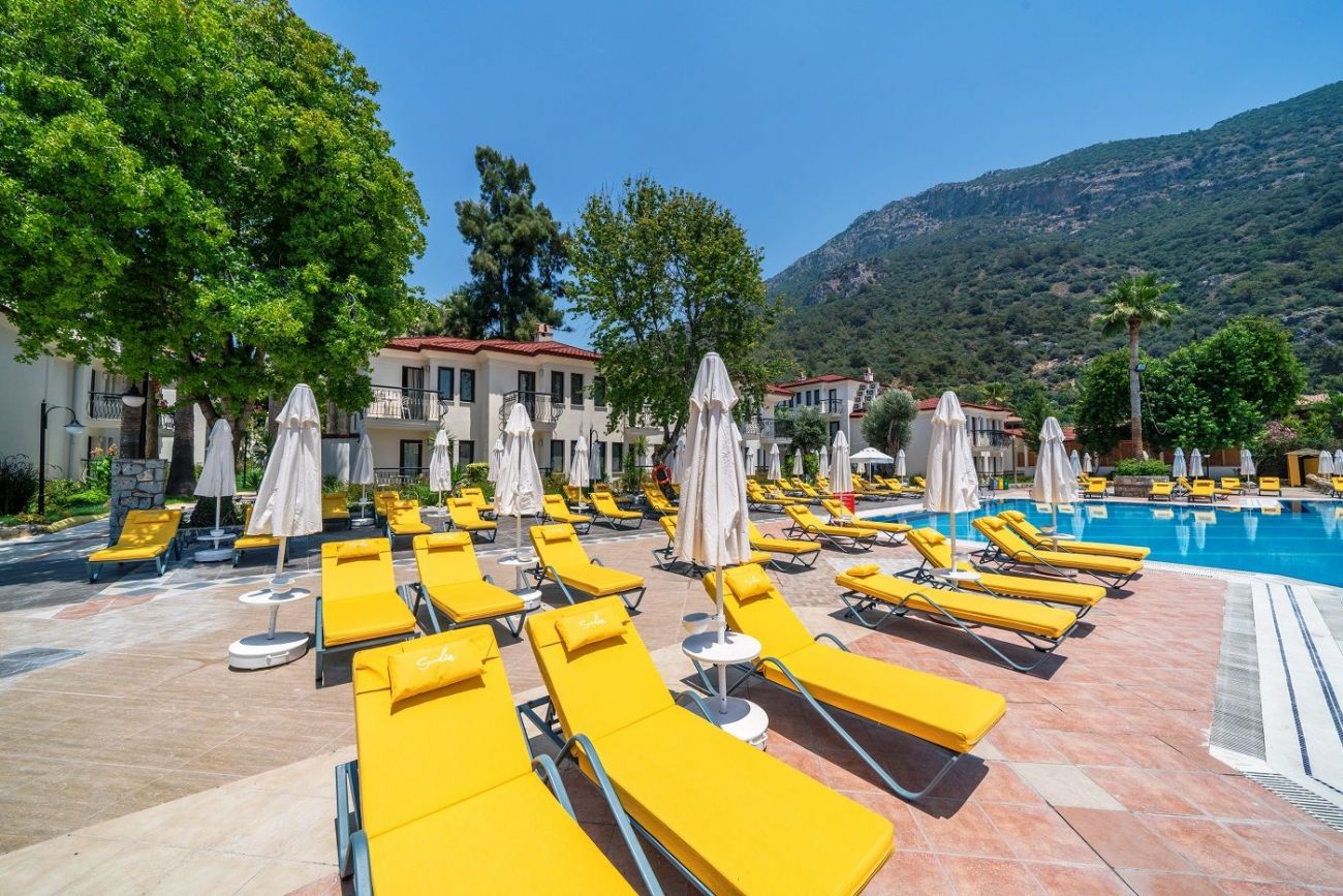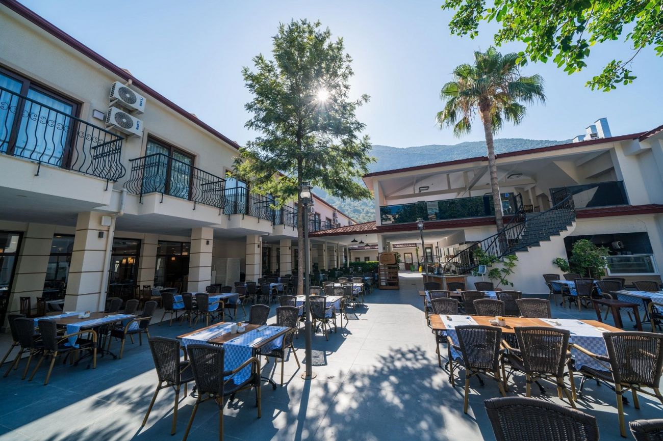 Хотелът се намира в курортното селище Олудениз, на 150 метра от известния плаж Белчекиз.