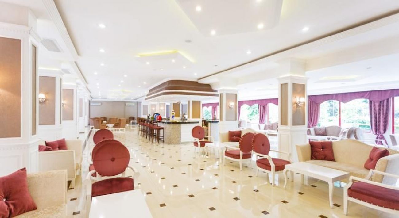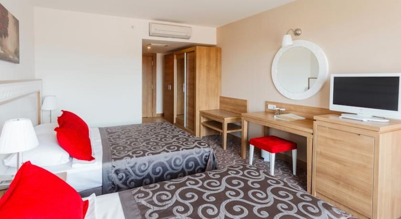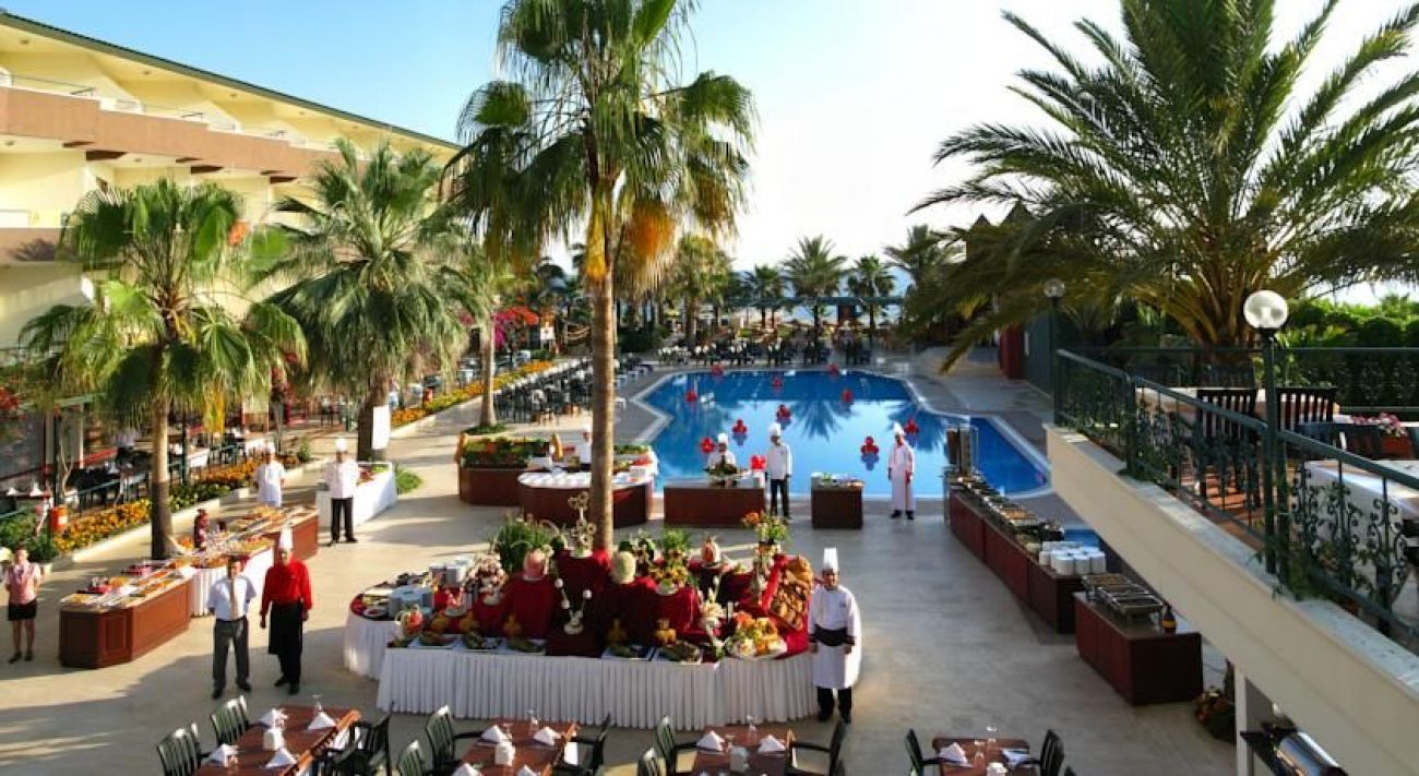 Хотелът разполага с 2 басейна, водни пързалки, безплатен Wi-Fi, вътрешен и външен ресторант, които предлагат турска кухня и интернационална, снек бар и американски бар.