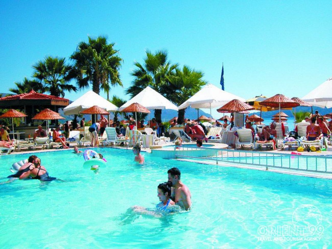 На 95 км. от летището в гр. Даламан, 1,5 км от центъра на Мармарис, на брега на морето със собствен пясъчен плаж, намира се близо до аквапарк “ Atlantis “