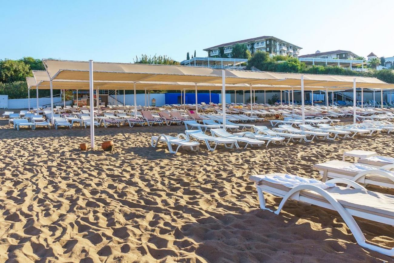 Собствен, на 500 м. от хотела, пясъчен. Безплатен шатъл до плажа (в определен часови диапазон). Чадъри, шезлонги и плажни кърпи на плажа и при басейна – безплатно.
