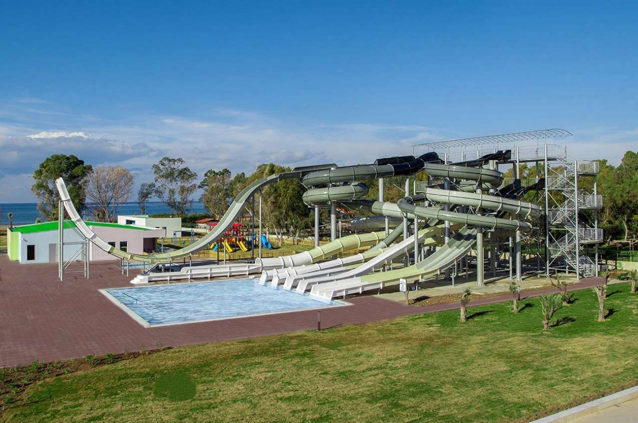 Детски басейн, 8 детски водни пързалки, детска площадка, мини клуб, анимация.