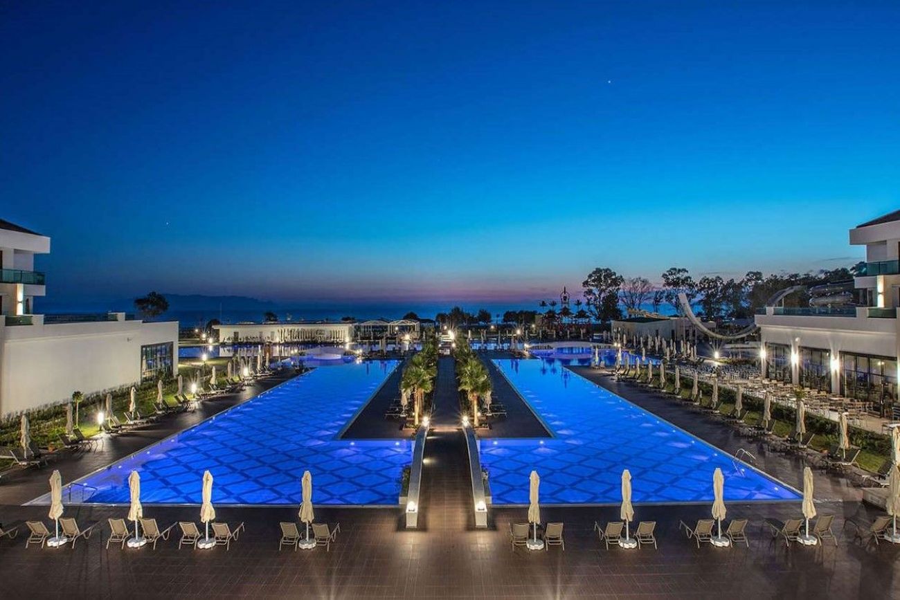 Основен ресторант, 3 а-ла карт ресторанта, 4 бара, сладкарница, 2 открити басейна, закрит отопляем басейн, 9 водни пързалки за възрастни, СПА център, дискотека, анимация, нощен клуб, паркинг.