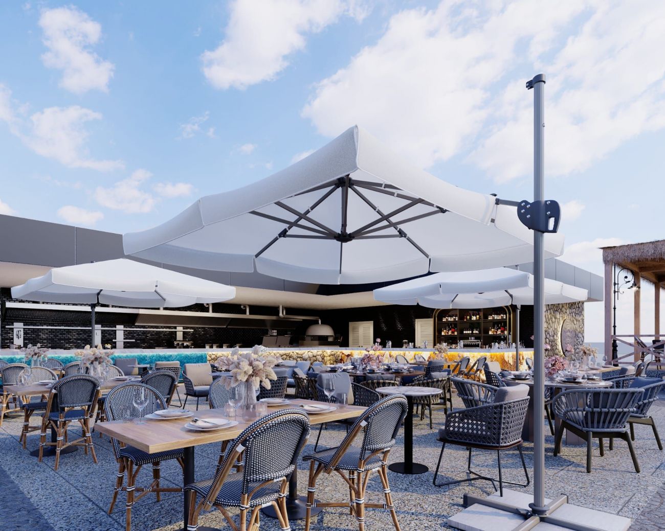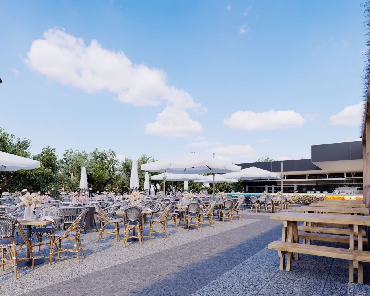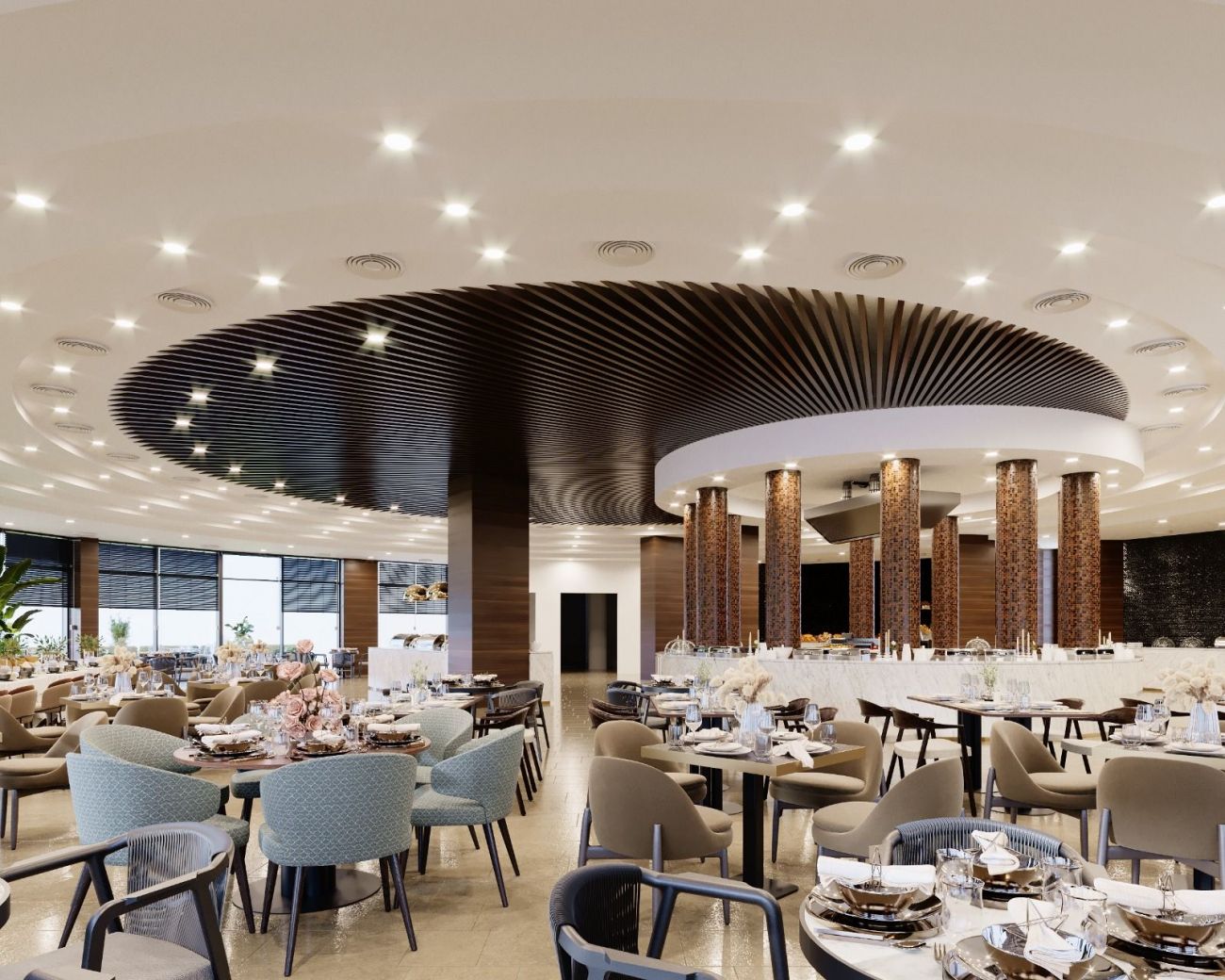 В хотела ще откриете основен ресторант, 4 бара, открит басейн, закрит басейн (с подгяване), 3 водни пързалки, лекарски кабинет, фризьор, магазини, пране, химическо чистене, 2 конферентни зали (350-550 чов.)