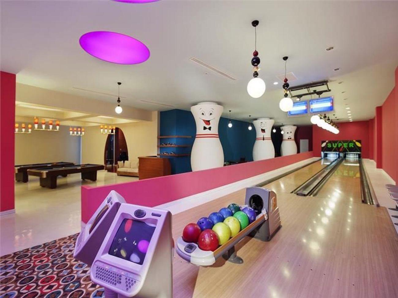 Външен басейн, джакузи, детски басейн, басейн с водни пързалки, вътрешен басейн, анимация, детски клуб, тенис на корт, болулинг, билярд, игрална зала, дартс, дискотека, лунапарк за деца от 3 до 14 г. , СПА и уелнес център.