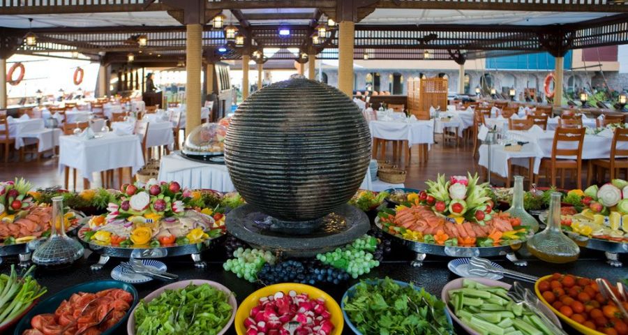Oсновен ресторант, 5 a la carte ресторанта (китайски, рибен, италиански, турски, мексикански - с предварителна резервация, за едноседмичен престой едно безплатно посещение на един от ресторантите), 7 бара, 3 открити басейна, закрит басейн, релакс басейн, аквапарк (6 водни пързалки), кино, лекарски кабинет, СПА център (платено), фризьорски салон, търговска алея, пералня (платено), химическо чистене (платено), 3 футболни игрища