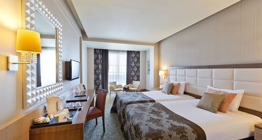 вана, сешоар, индивидуален климатик, телевизор, телефон, мини-бар (безалкохолни напитки и бира се зареждат ежедневно), безплатно, сейф (безплатно), подова настилка - теракот, балкон, ежедневно почистване на стаята, смяна на спалното бельо - 2 пъти седмично