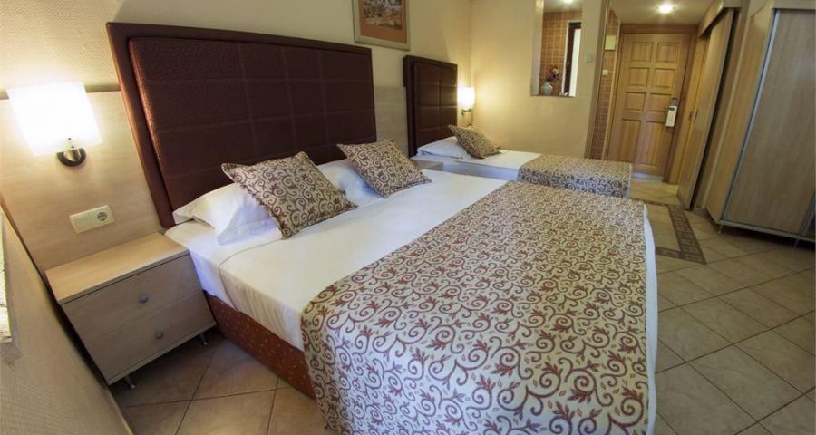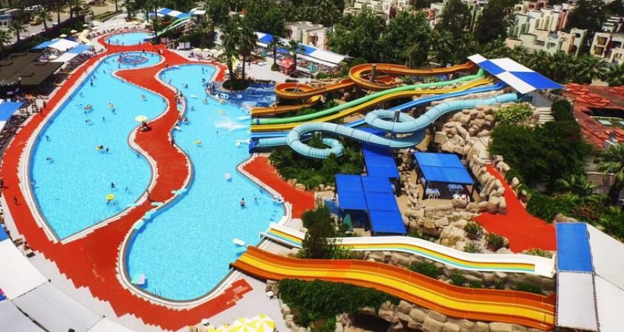 Този хотелски комплекс се намира на 450 метра от брега и предлага частен плаж, открит басейн с аквапарк и СПА съоръжения. Осигурен е безплатен трансфер до плажа. Той предлага климатизирани стаи със сателитна телевизия и балкон. Осигурен е безплатен Wi-Fi достъп.
