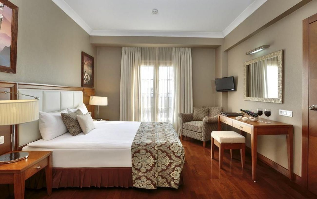 Централен климатик, баня с вана, сешоар, телевизор, телефон, мини-бар, сейф (безплатно), балкон или френски балкон, под - теракот (Club), мокет (Main Building), почистване на стаята - ежедневно, смяна на спалното бельо - 2 пъти в седмицата.