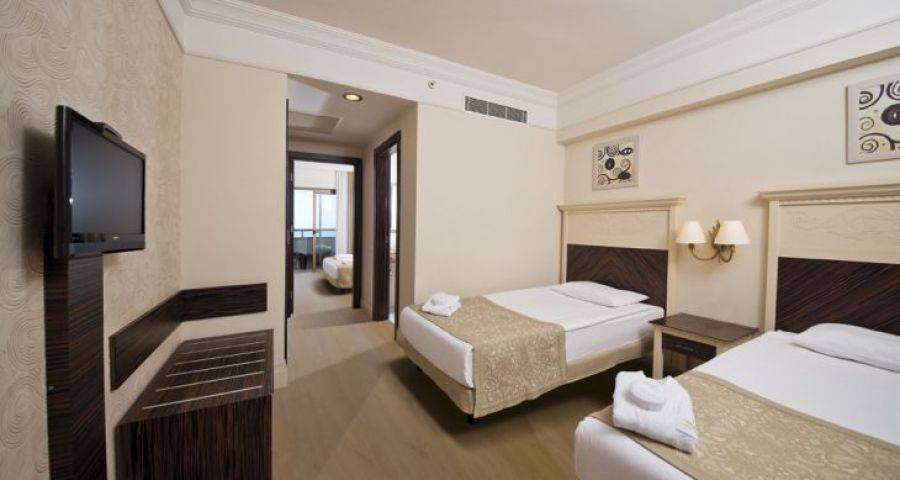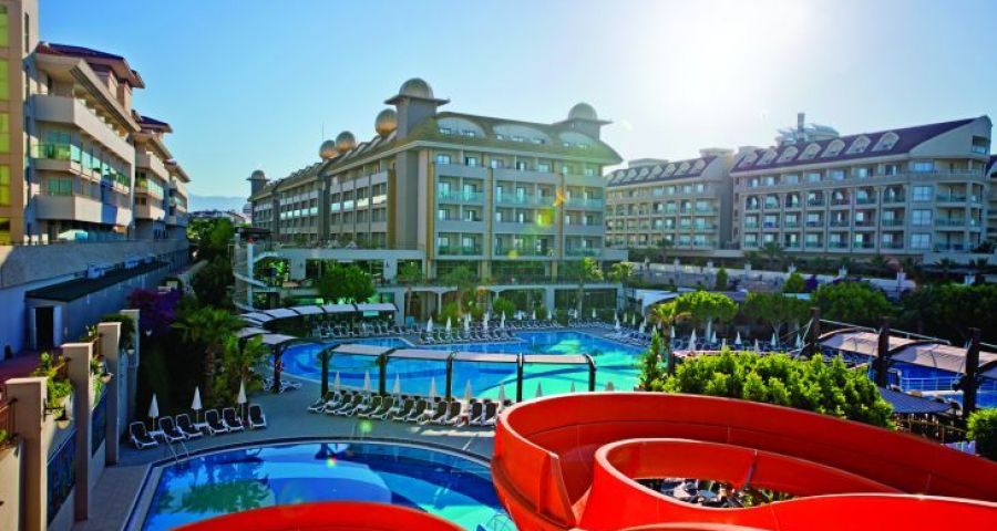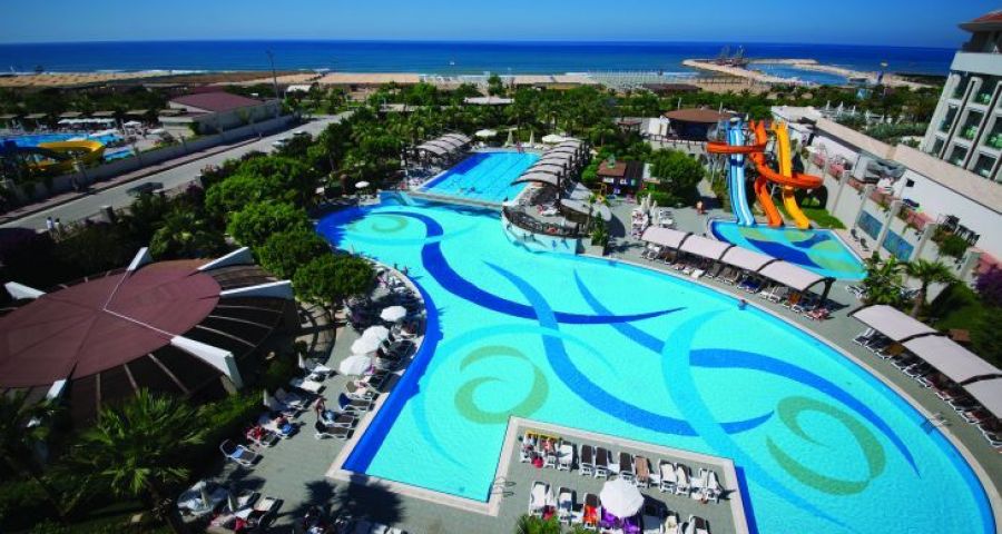Хотел Aydinbey King's Palace е разположен на брега на Средиземно море и разполага с частен пясъчен плаж. Хотелът включва 3 открити басейна, водни пързалки, фитнес център, СПА център.