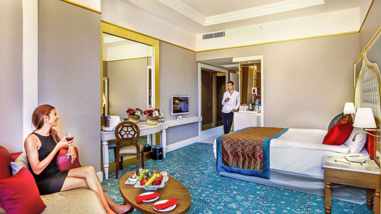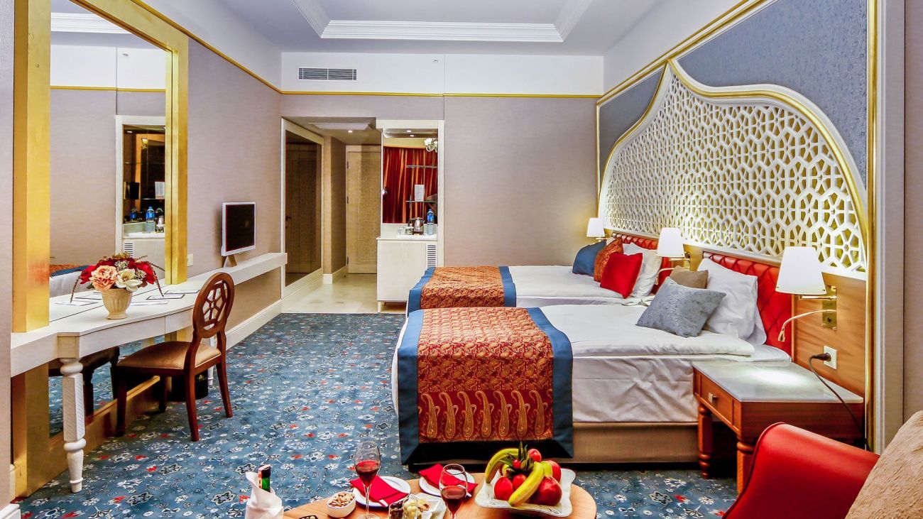 Хотелът разполага с общо 450 стаи, от които 356 стандартни стаи и 68 фамилни стаи. Всички стаи са оборудвани с: климатик, сателитна телевизия, телефон, баня с вана, сешоар, минибар (платено), сейф (безплатно), балкон. Почистване на стаите и смяна на кърпите – всеки ден, смяна на бельото – 2 пъти в седмицата.