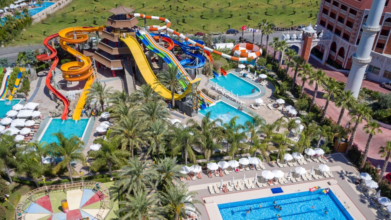 За децата: Детско меню, детски площадки, мини клуб (4-12 г.), 2 детски басейна, водни пързалки, мини дискотека, анимация, лунапарк, зоопарк.