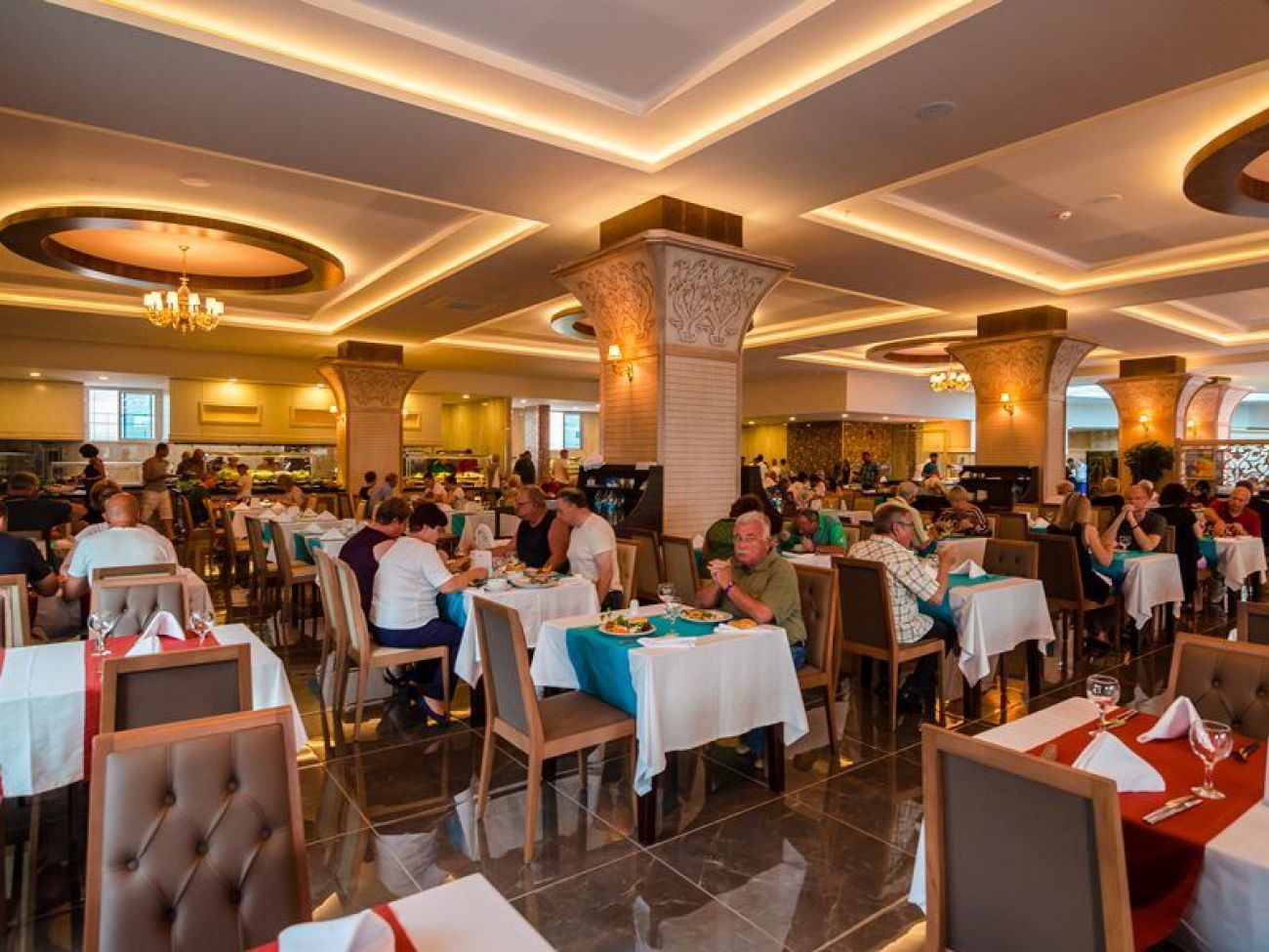 Основен ресторант, 2 бара, открит басейн,закрит басейн, водни пързалки, аквапарк, магазини, СПА център, дискотека, кино, амфитеатър, паркинг.