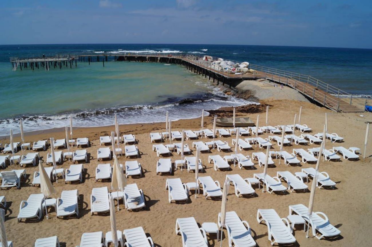 Собствен, пясъчен. Чадъри, шезлонги и матраци на плажа и при басейна – безплатно, плажни кърпи – срещу депозит.