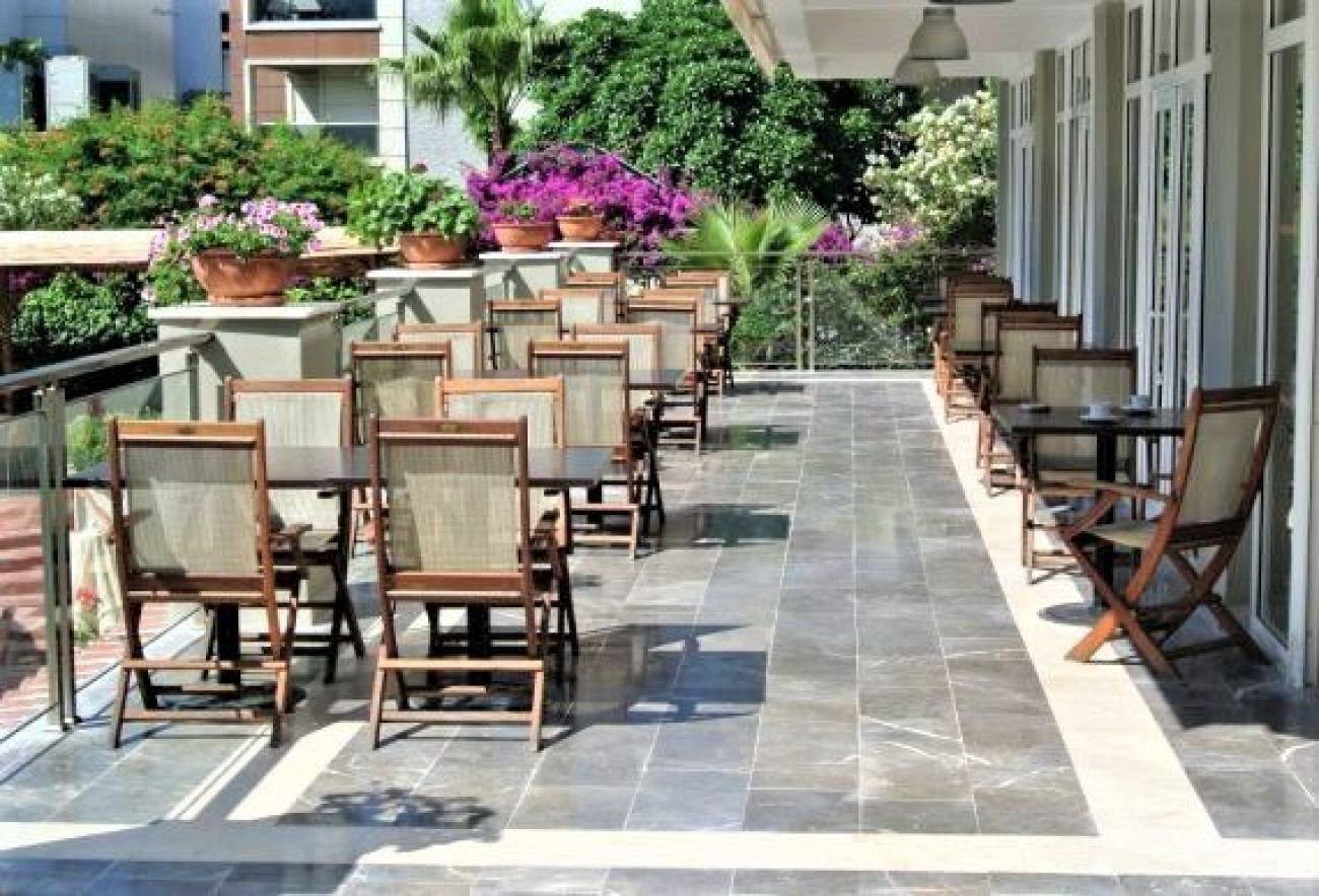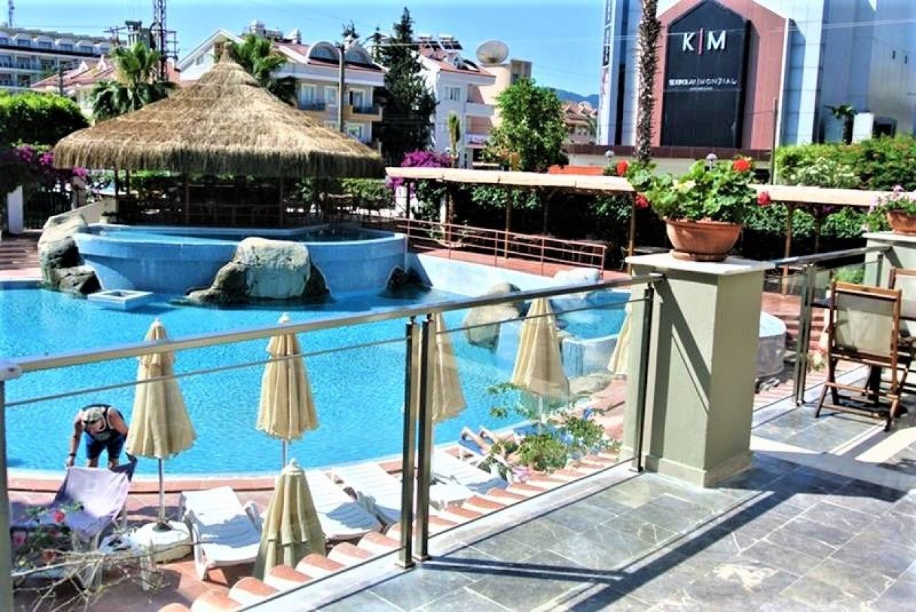 на 100 км от летище Даламан, на 1 км от центъра на Мармарис, на 200 м от градския плаж (през пътя)