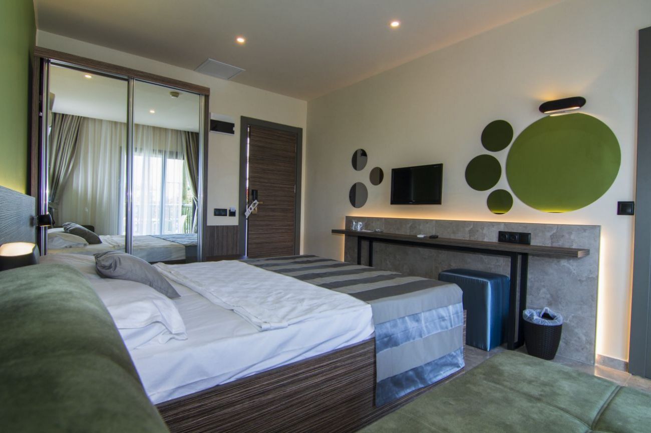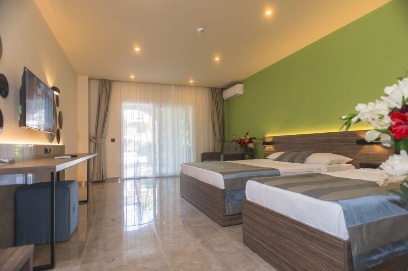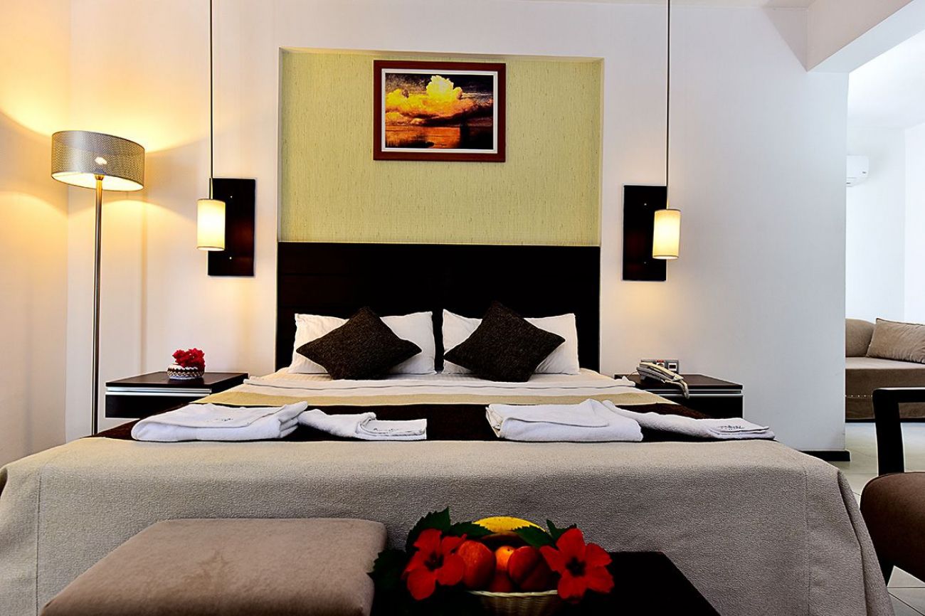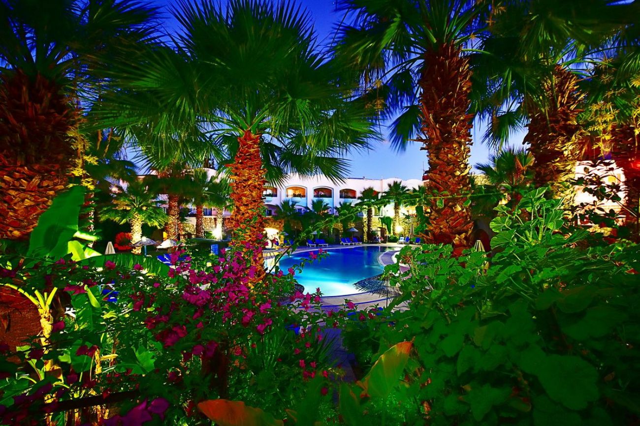 204 стандартни стаи(18кв.м.), 8 фамилни(30 кв.м.) и 25 апартамента(40 кв.м.). Открит ресторант, a la carte ресторант (срещу заплащане), бар на плажа и на басеина.