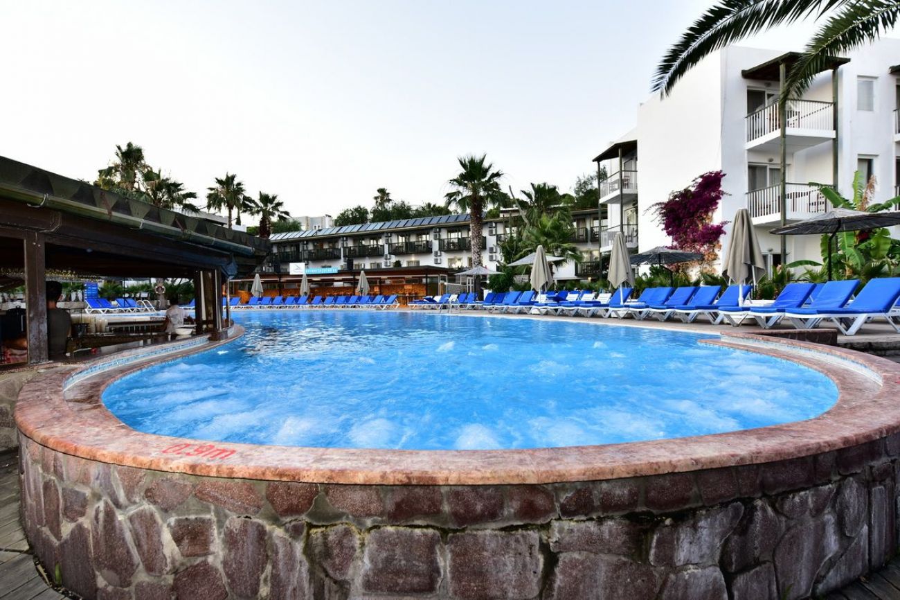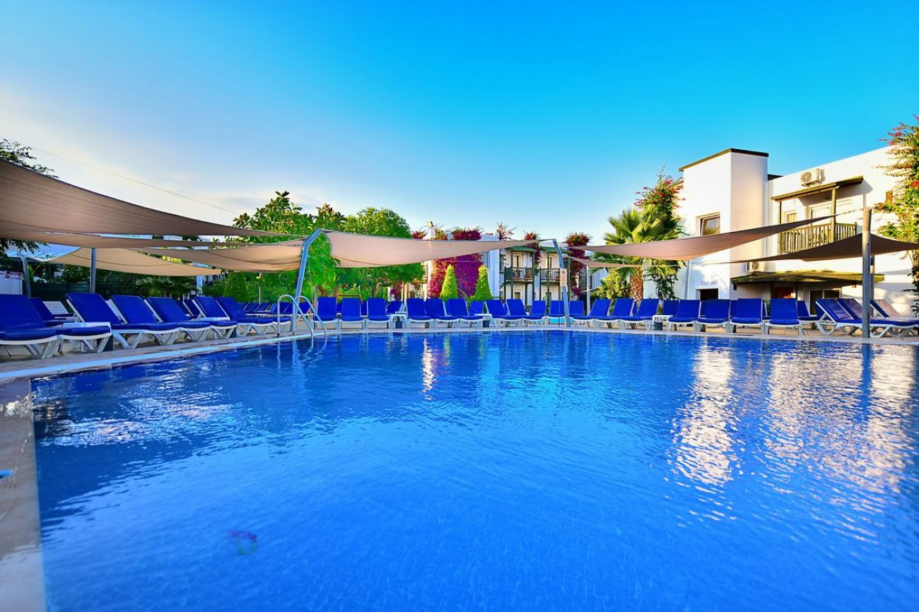 На 3 км. от Бодрум в центъра на Гюмбет, на брега на морето и 38 км от летище Бодрум.