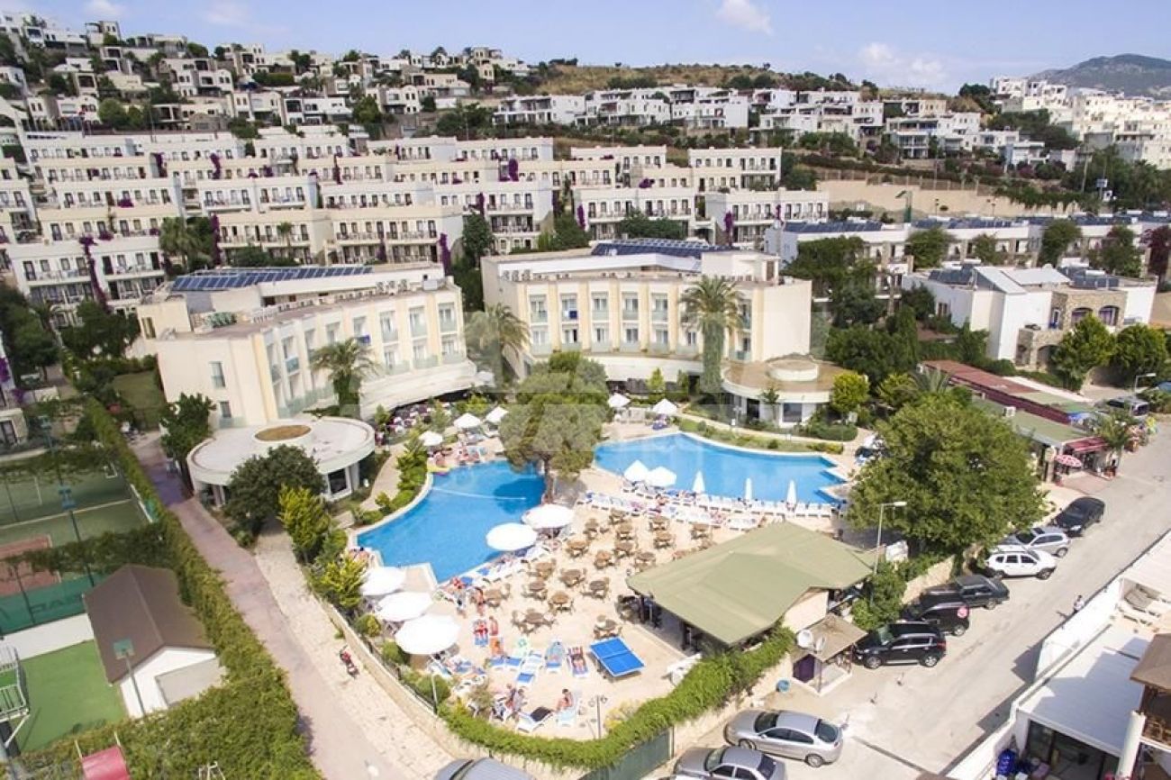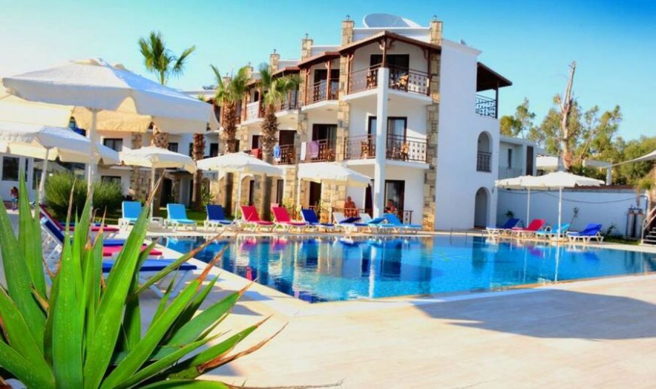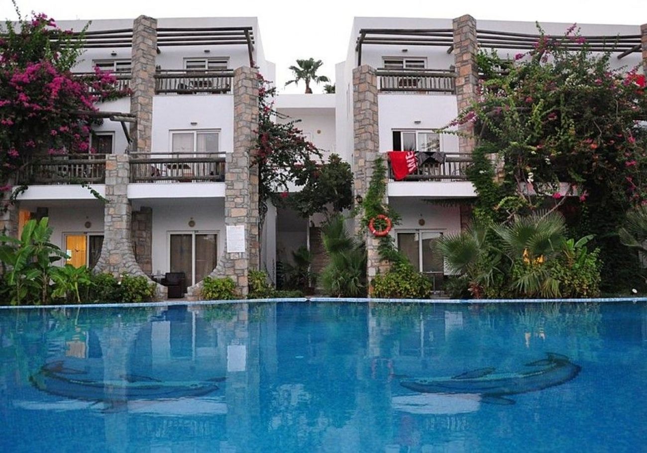 на 3 км. от Бодрум в центъра на Гюмбет, на брега на морето и 38 км. от летище Бодрум