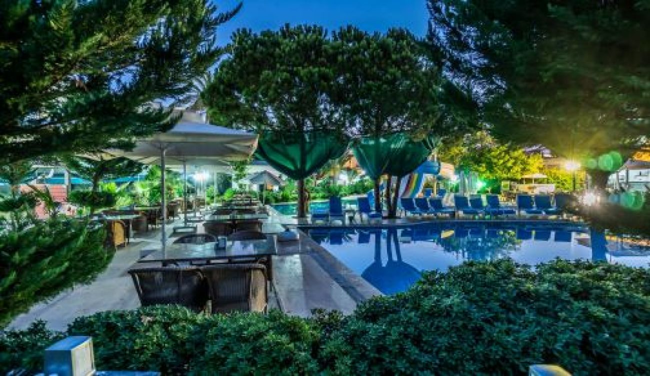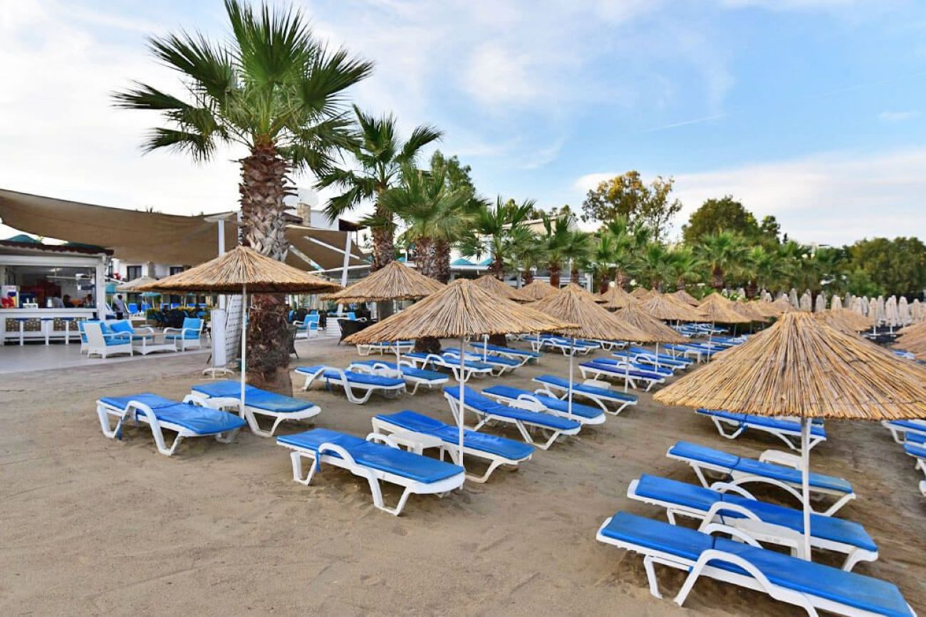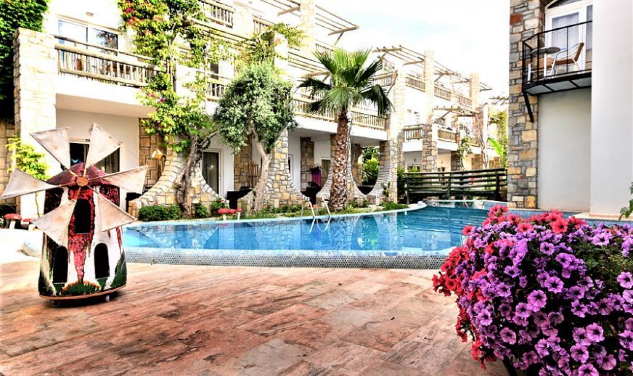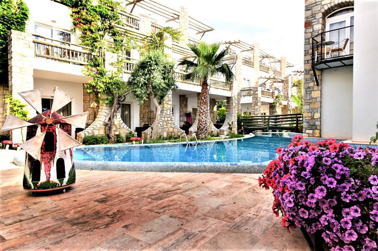 на 3 км. от Бодрум в центъра на Гюмбет, на брега на морето и 38 км. от летище Бодрум