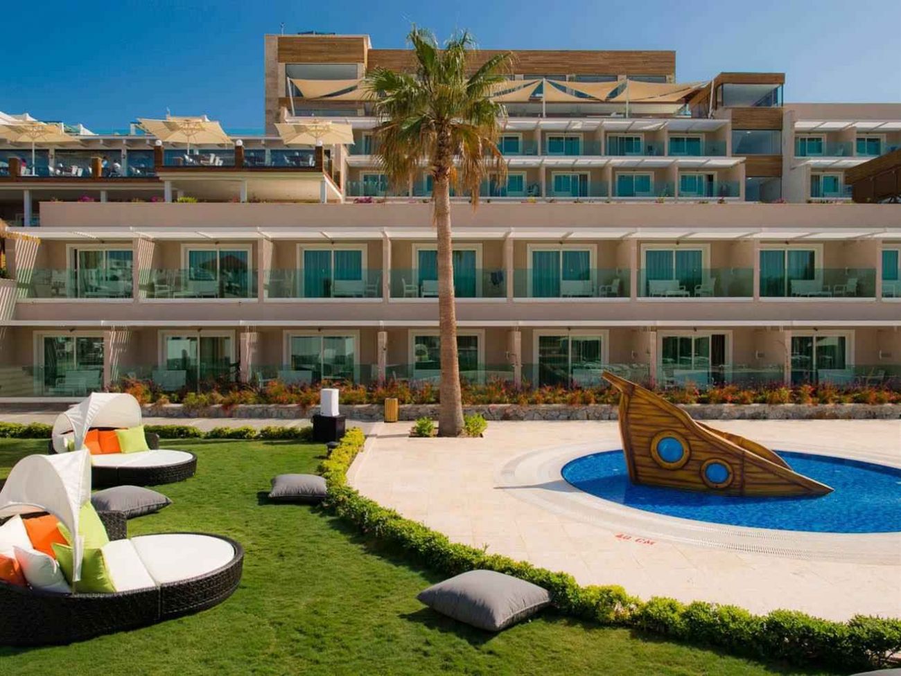 Хотелът се намира на 8 км от Тургутрейс, на 120 м от морето. Състои се от една основна 5-етажна сграда и пет 1-, 2- и 3-етажни бунгала.