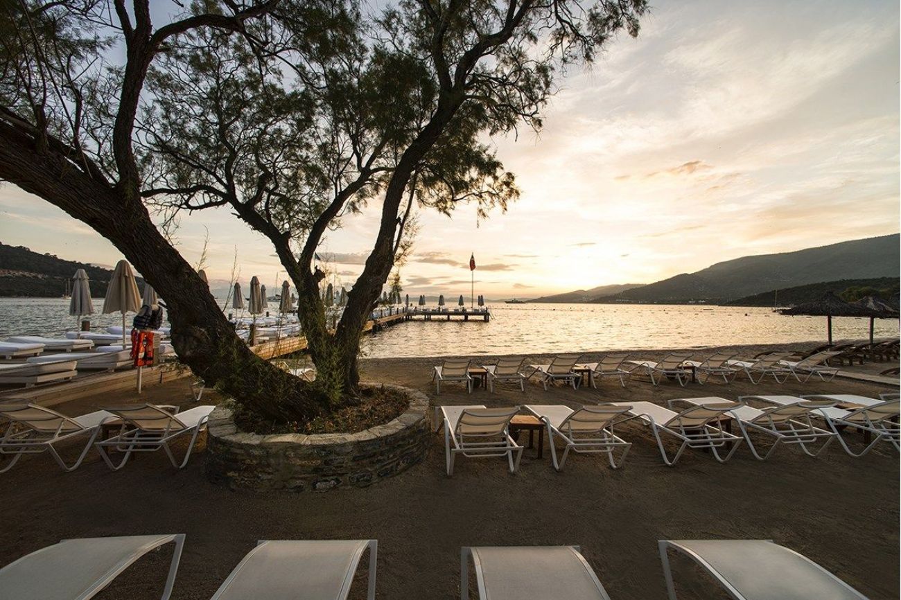 Собствен - 300м пясъчна ивица, 2 платформи - чадъри, шезлонги и матраци на плажа и при басейна безплатно.