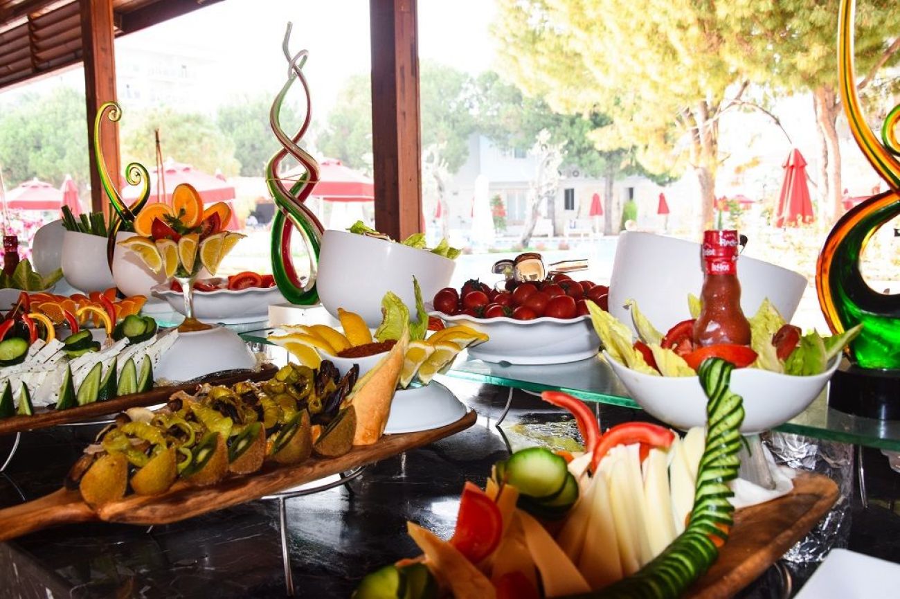 основен ресторант, диетично меню, 5 ресторанта a-la-carte (турски, мексикански, азиатски, рибен, италиански - с предварителна резервация, по едно безплатно посещение на всеки ресторант за едноседмичен престой), 5 бара, 2 открити басейна, закрит басейн, аквапарк (6 водни пързалки), лекарски кабинет, спа-център, фризьорски салон, търговска алея, пералня, химическо чистене, 3 конферентни зали (за 100-400 души)