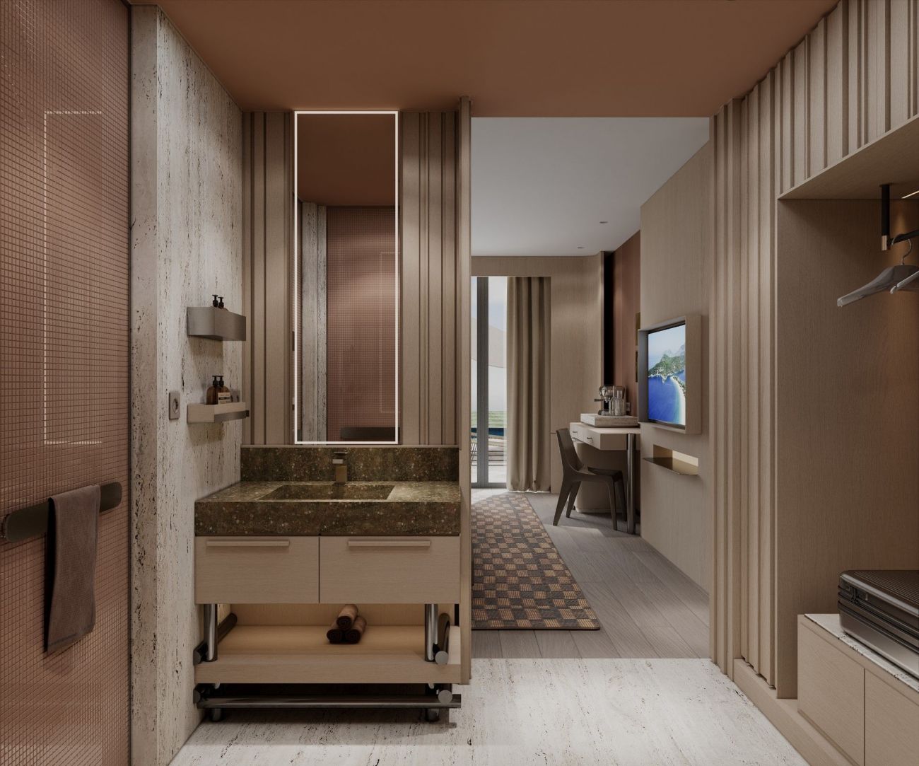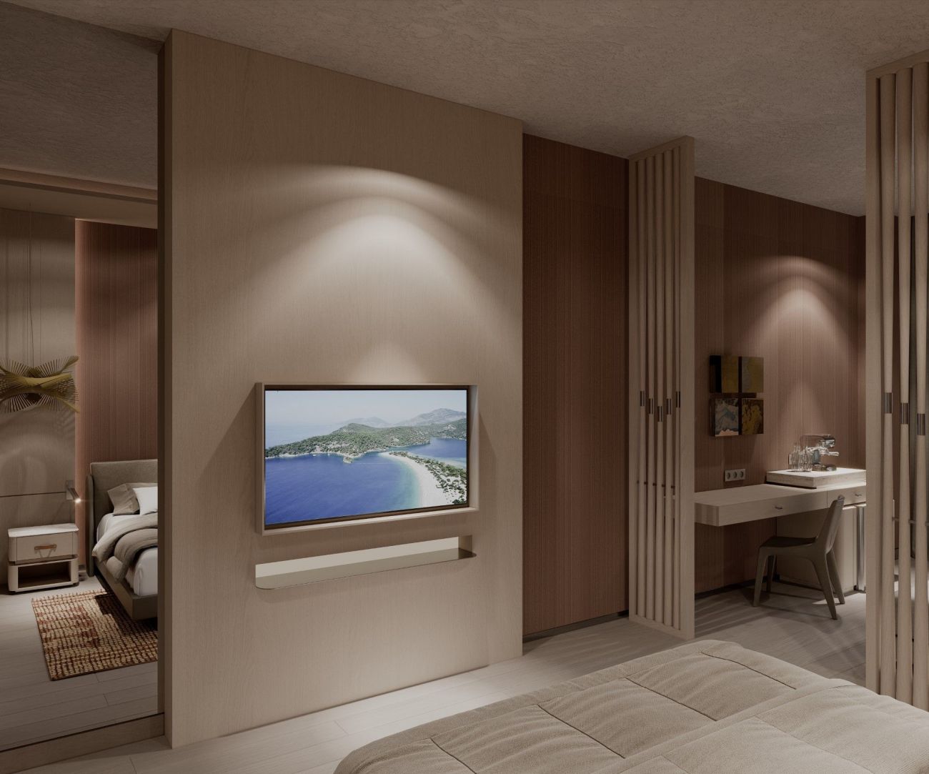 Луксозен и уникален архитектурен дизайн, модерен интериорен дизайн елегантност с топлите нюанси на природата, перфектен баланс между естетика и функционалност, Климатик / Безплатен WiFi / Мини-бар / Сейф/комуникационни системи и всички детайли за комфорт.